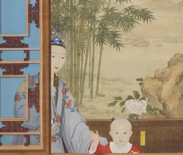 ▲图4 《乾隆后妃与嘉庆帝幼年像轴》(局部)。数据源:故宫博物院藏,〈乾隆后妃与嘉庆帝幼年像轴〉,故宫博物院授权提供,孙志远摄影。
