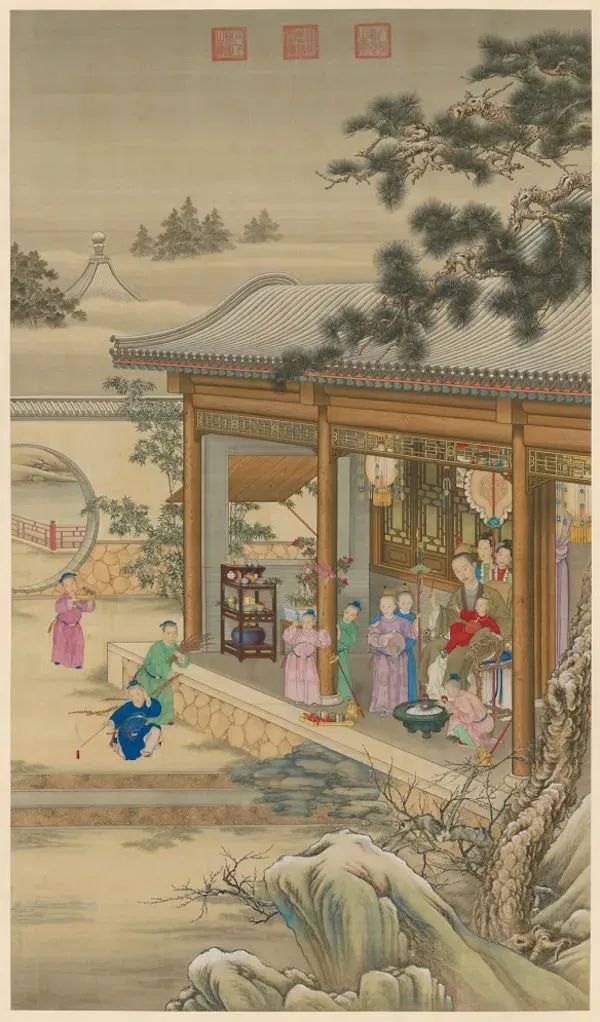 ▲图2 《清人画弘历岁朝行乐图轴》数据源:故宫博物院藏,《清人画弘历岁朝行乐图轴》,故宫博物院授权提供,冷含章摄影。