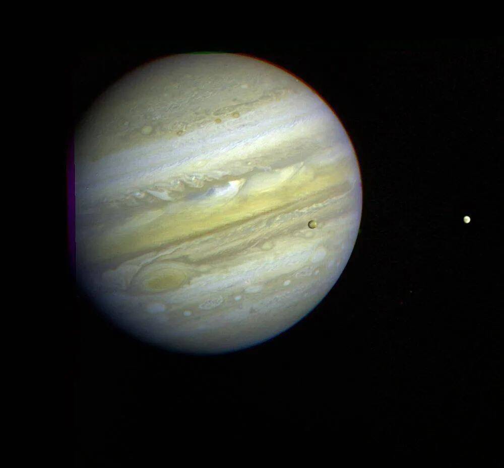 木星是距离太阳第五近的行星,也是太阳系中体积最大的行星,目前已知有79颗卫星。古代的天文学家就已经知道这颗行星[11] ,罗马人以他们的神称这颗行星为朱庇特[12]。古代中国则称木星为岁星,取其绕行天球一周为12年,与地支相同之故[13]。到西汉时期,《史记‧天官书》作者天文学家司马迁从实际观测发现岁星呈青色,与“五行”学说联系在一起,正式把它命名为木星。