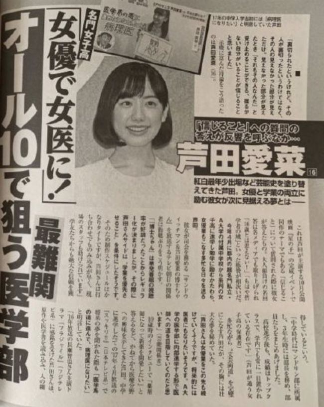 拿到了这么艰难的推荐名额,但是芦田爱菜担心自己会因为公众人物的身份被质疑得到了特殊对待,所以放弃了名额,准备去考京都大学的医学部(也很难考,但有她喜欢的导师)···