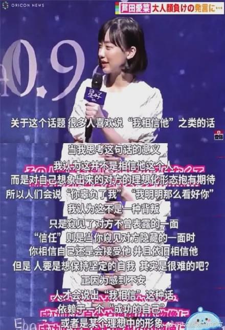 不得不说爱看书还是有意义的,之前对于“信任”的话题,她表现的完全不像我们印象中十几岁艺人会说得话,十分通透、达练,反而像个学者。