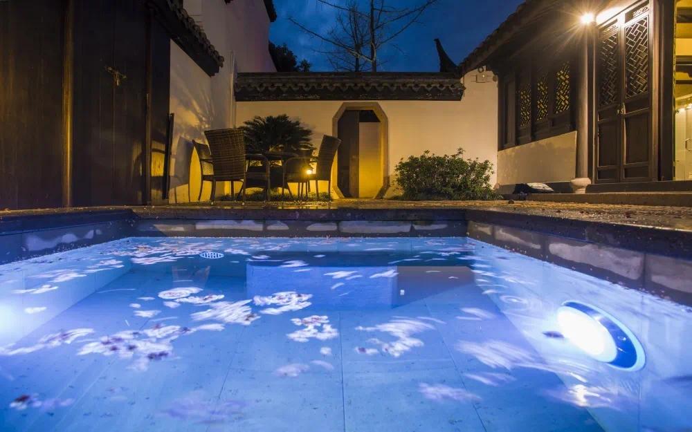 达蓬山温泉采用中国古典园林制式,共有儿童互动池、漩涡池、涌泉池、按摩池、鱼疗池、长生不老池、原汤池、艾草池、名木汤池等二十二个露天泡池。另设250平方综合休闲区,设置生态茶食、养生SPA、影音空间等休闲娱乐项目。乏了便去休闲小站喝喝茶水,聊聊天,看看电影。