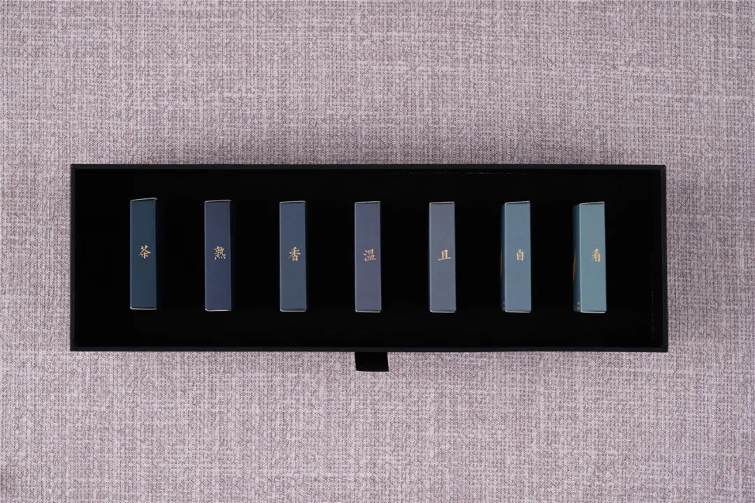 7枚茶饼,各印一方历代名家所刻印章,于茶杯的暗香浮动中品出文化与故事。