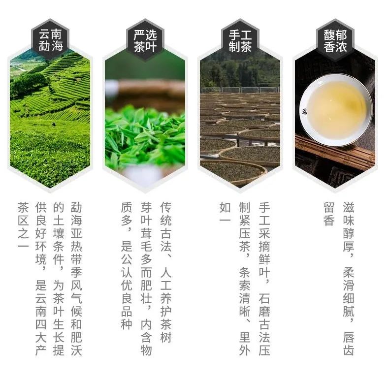 手工采摘鲜叶,古法压制、滋味醇厚、唇齿留香~