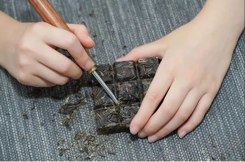 背部设有压痕,茶刀根据痕迹取茶,一块茶砖可冲泡9次,供2-3人饮用。