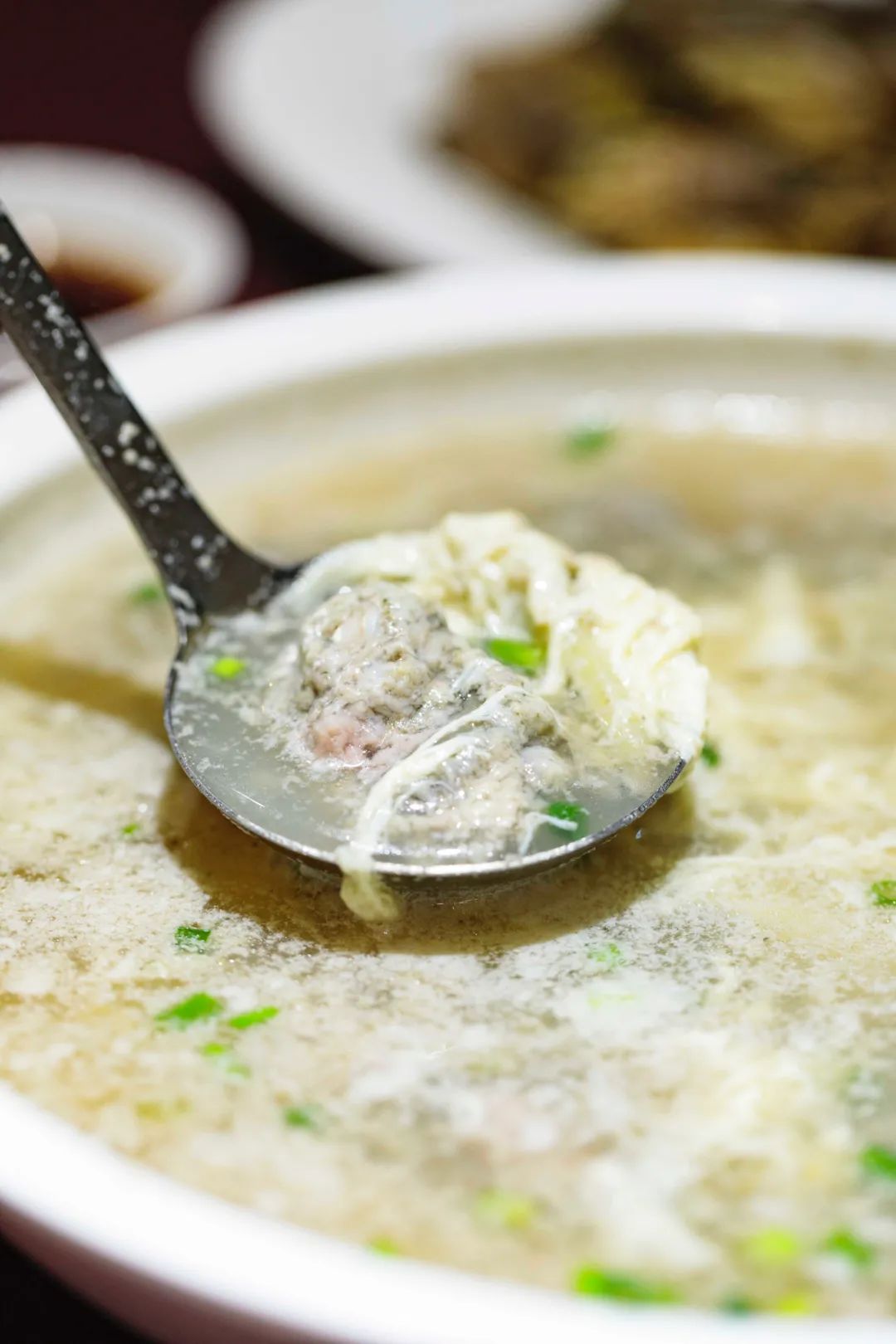 再来一碗热腾腾的沙蒜汤,汤底看上去有点浑浊,但味道特别鲜美。尤其是沙蒜口感也很独特,韧劲中带着脆。一碗下肚,酣畅淋漓。