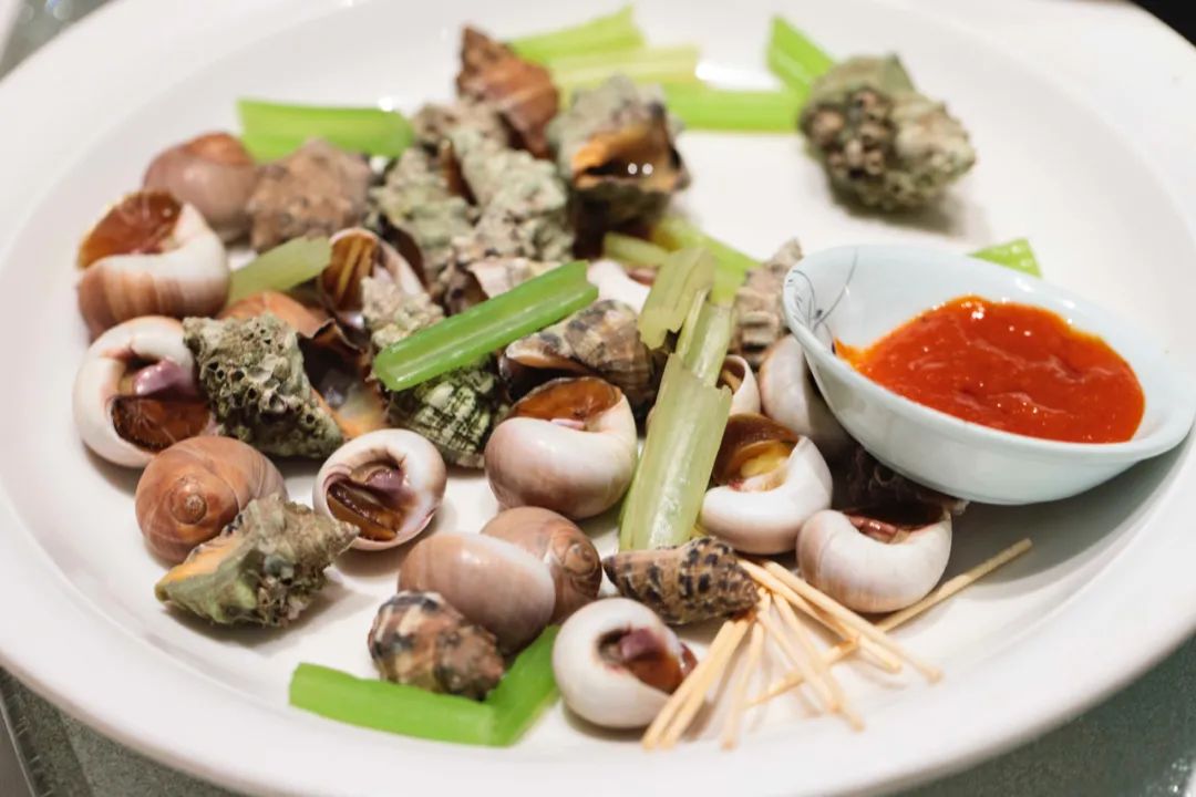 香螺和辣螺的盐水拼盘,配上蒜蓉辣酱,明亮的甜辣口感,好吃度惊人!