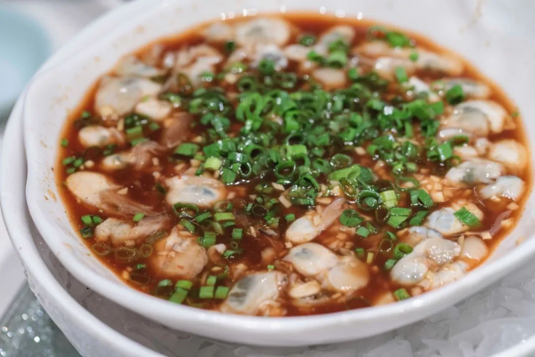 先来道凉拌牡蛎开开胃,不同于法餐里精致的牡蛎吃法,用酱油醋调味的牡蛎更接地气,每一口都是大海的味道。