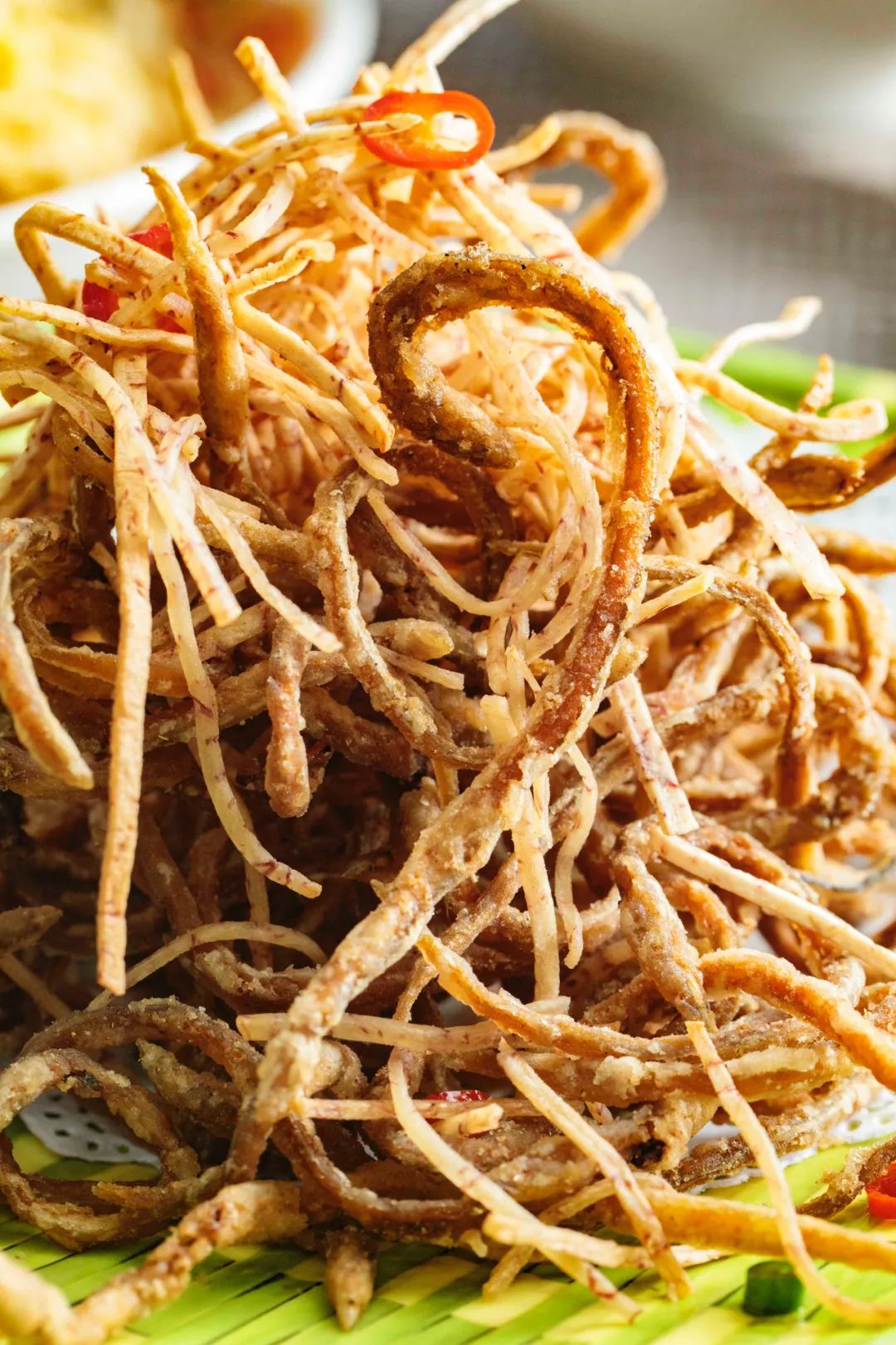 鳗鱼苗就是鳗鱼的崽子,经过油炸和加上椒盐,口感像是我们儿时一直吃的小鱼干,脆香脆香的,是下酒菜的不二之选。