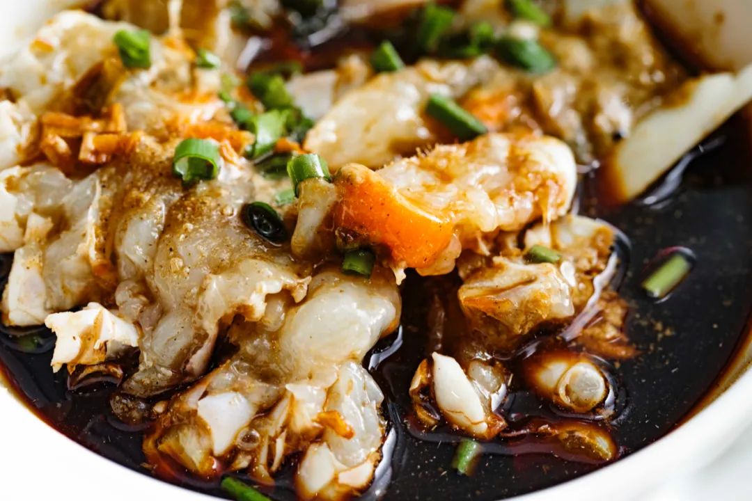 当地家常的做法是用酱油水去蒸,底下还会铺上厚薄适中的地瓜片。懂经的老饕都知道蝤蠓最鲜的地方不是蟹黄,而是大蟹钳。丰腴的蟹肉顺着钳子冒出来,蘸上酱油水,鲜到眉毛掉下来。