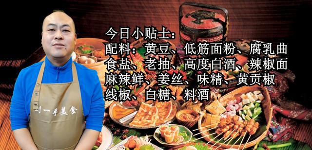 黄豆、低筋面粉、腐乳曲、食盐、老抽、高度白酒、辣椒面、麻辣鲜、姜丝、味精、黄贡椒、线椒、白糖、料酒
