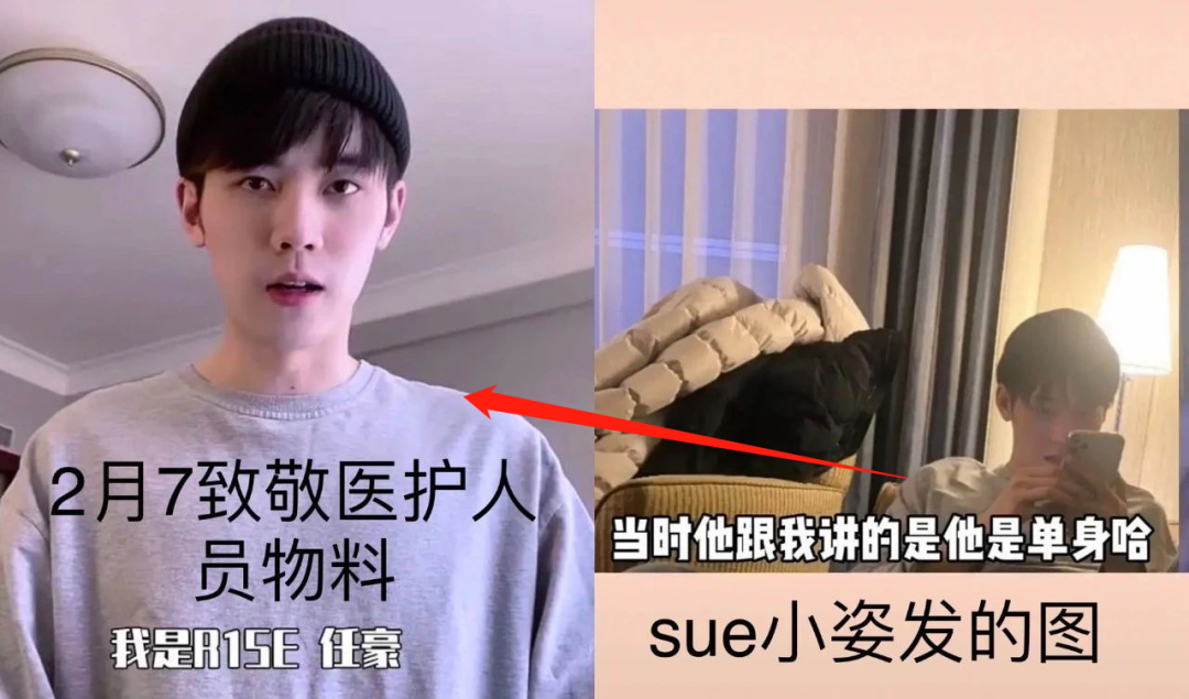 小姿晒出在酒店拍摄任豪的照片,灰色卫衣和任豪2月7号致敬医护人员视频中衣服一样,说不定视频就是在酒店拍的。