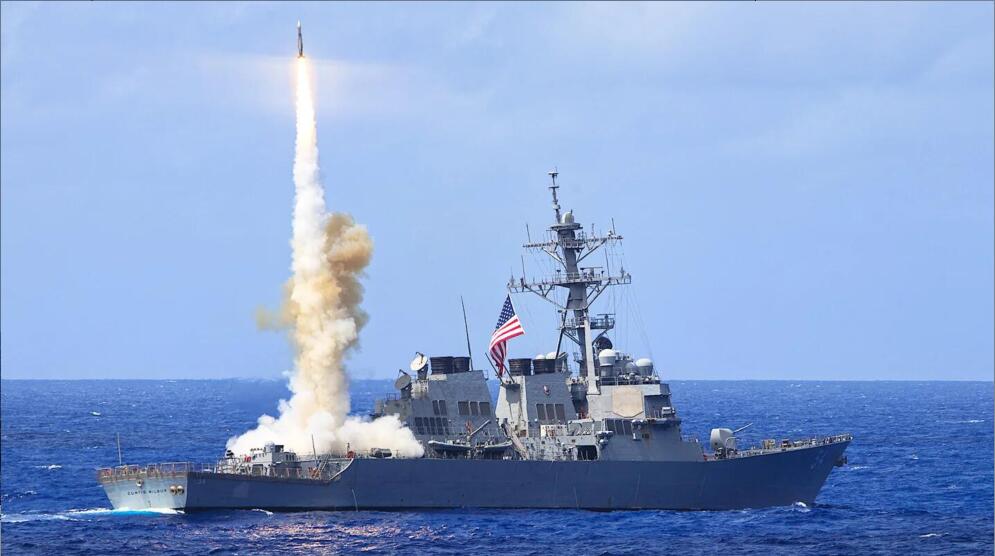 美国海军阿利伯克级驱逐舰发射导弹