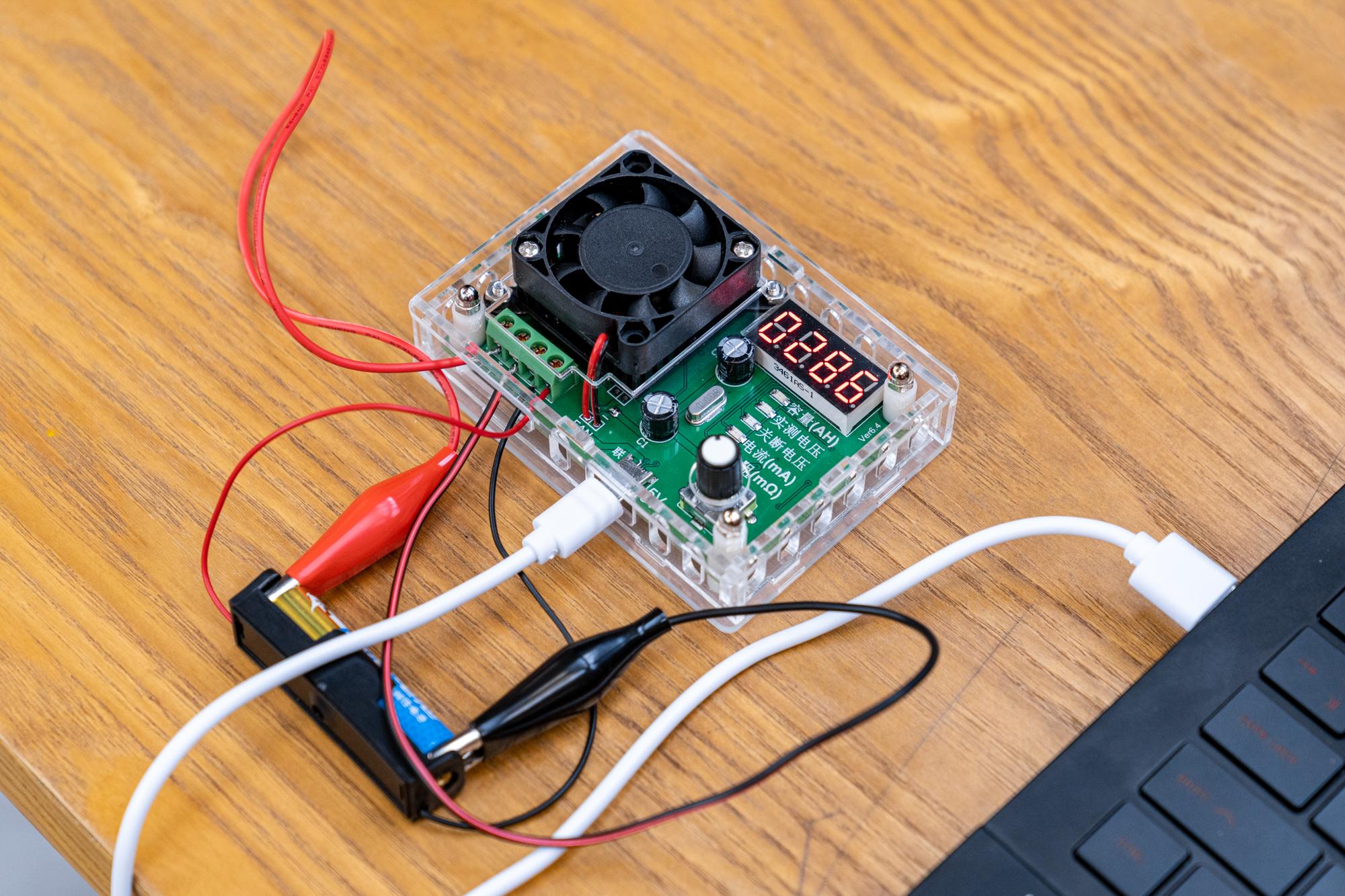 测试电池的设备我选择的是 TEC-06 电池容量检测仪,它的电流范围为 0.1A-3.5A,最大功率可达16W,适合 15V 以下的电池,最大检测容量 500000mAH (500AH),电流最大误差<0.5%,电流温漂小于0.1%。