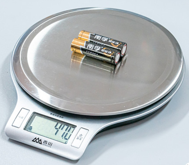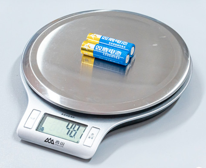 在重量方面,一对双鹿电池的重量在 48.1g,单颗电池的重量在 24.05g 左右,电池的实际重量是在标准重量上下浮动 1g 左右,这要比普通的干电池重一些。或许有些人会觉得电池是不是越重越好,其实这个想法有道理但不全对。