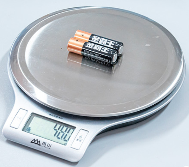 在重量方面,一对金霸王电池的重量是 48.0g,1 颗电池的重量是 24g,这算是比较标准的规格了。