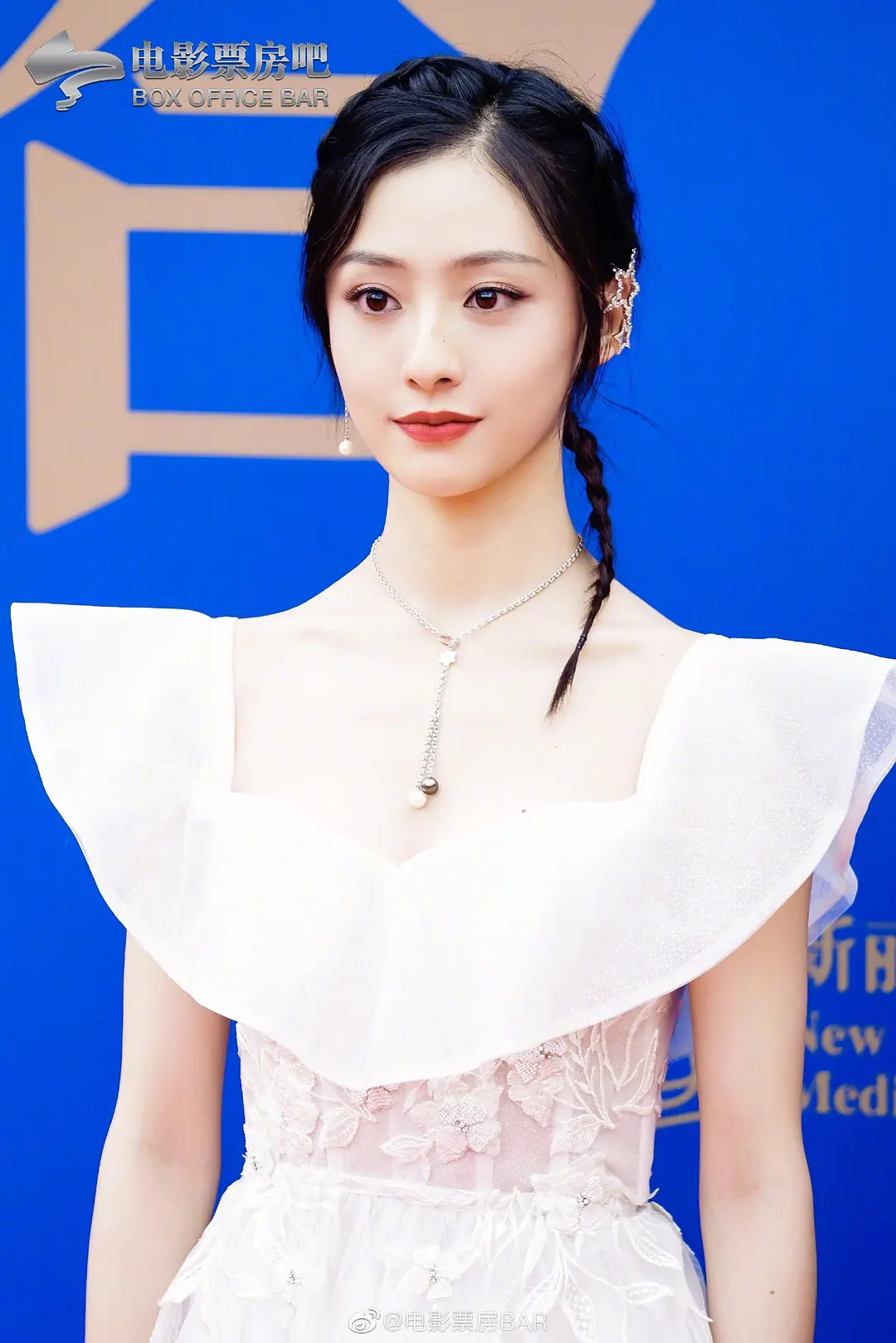 乍一看有点像董洁加郑爽,长得很清纯,红毯上虽然妆很浓表情有点用力,但整个人还是少女感满的。