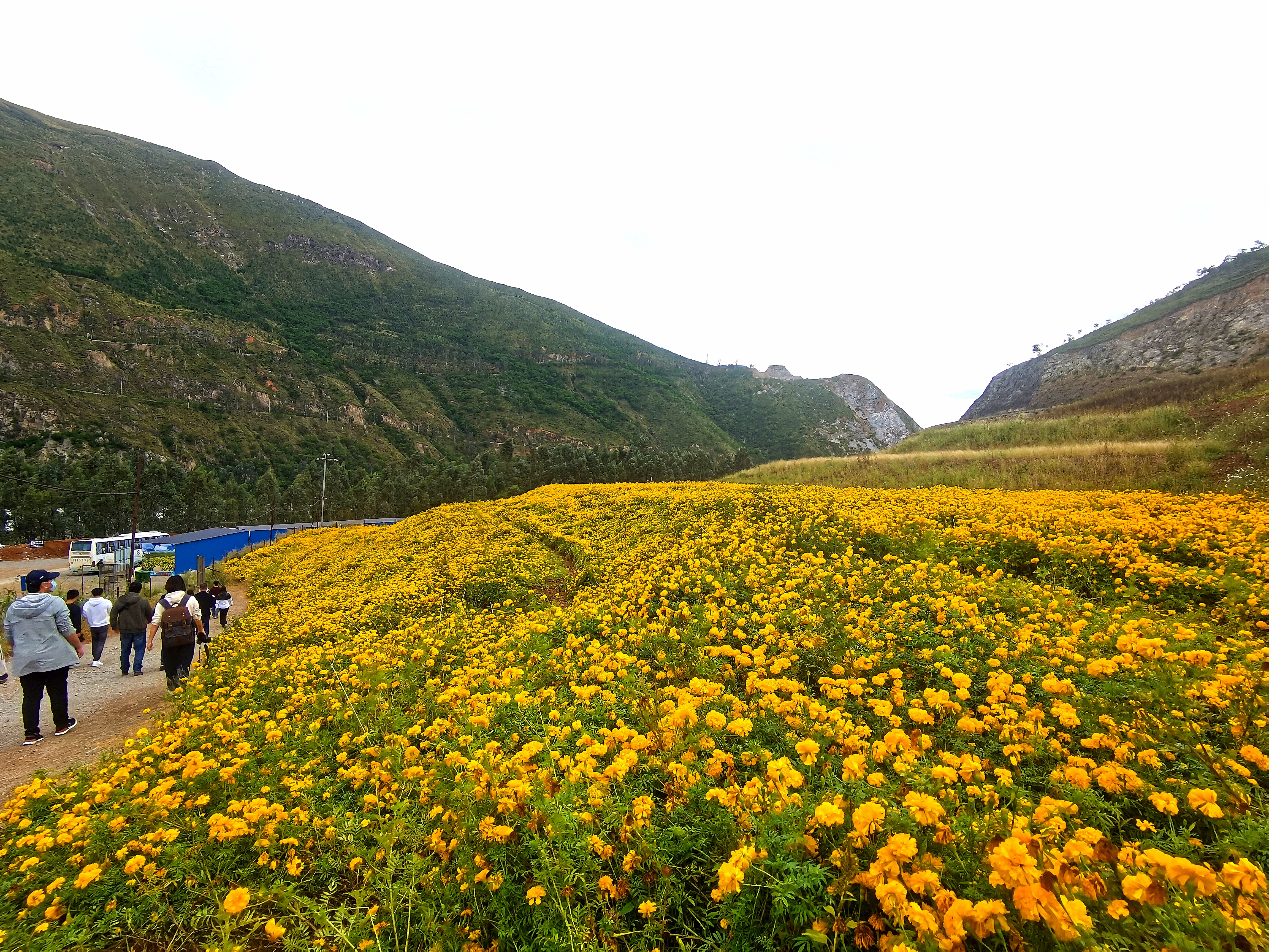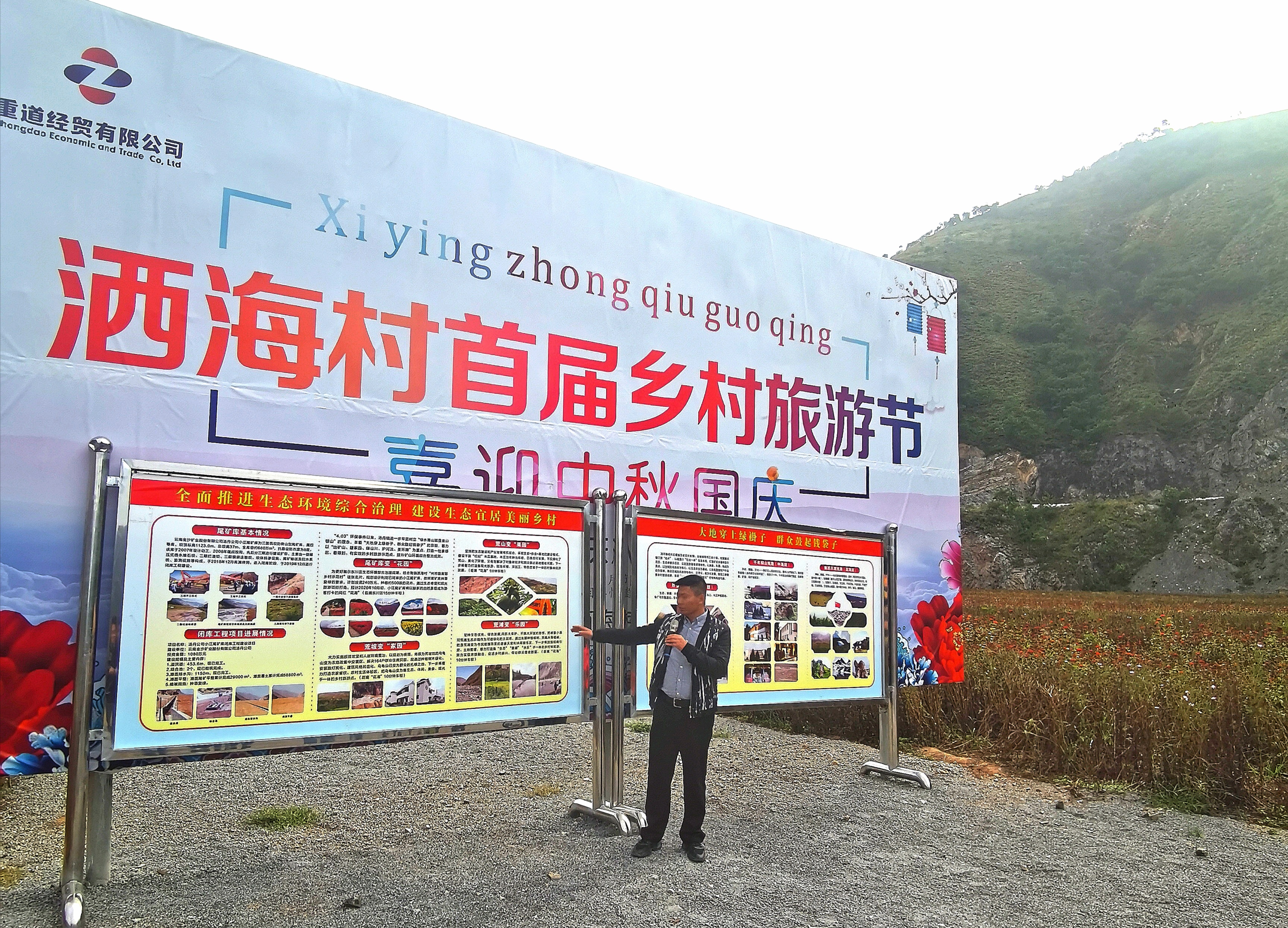 到今天,汤丹镇已经种植约500亩花卉,投资240万元,其中坝内约265亩种植蓝色(兰萼鼠尾草、小叶鼠尾草)、黄色(硫华菊矮杆、金鸡菊)、红色(百日草、剪秋萝)、粉色(波斯菊矮杆、长春花)、玫红色(波斯菊矮杆、紫松果菊)、橙色(硫华菊矮杆、天人菊)、白色(波斯菊矮杆、西洋滨菊)7种颜色11类花卉,坝外约235亩种植紫花苜蓿,现已经盛开,今年国庆期间,每日观看花海人流量已到每日5000人左右,百亩花海每天吸引着成千游客观光游览,不仅解决了尾矿库坝体安全隐患问题,减少了水土流失对小江水质的影响,还使曾经靠天吃饭的洒海村迎来了新的发展机遇,形成了新的旅游经济圈。