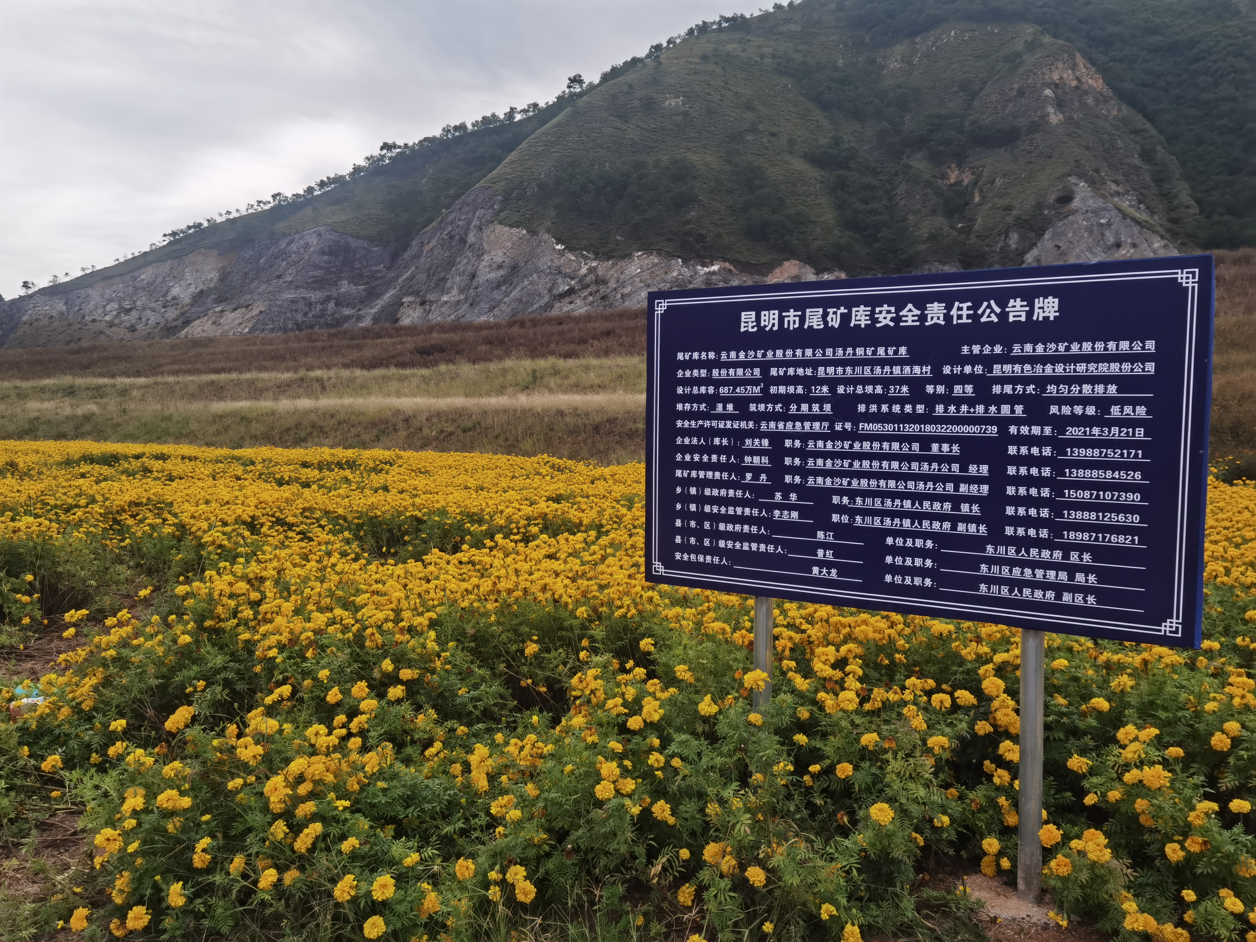 2019年,汤丹镇对接区应急管理局、区环保局、企业等相关单位,经各单位同意,决定在该尾矿库上种植安全、生态并具有观光价值的花卉,把面积约500亩的尾矿库区打造为观光“花海”。
