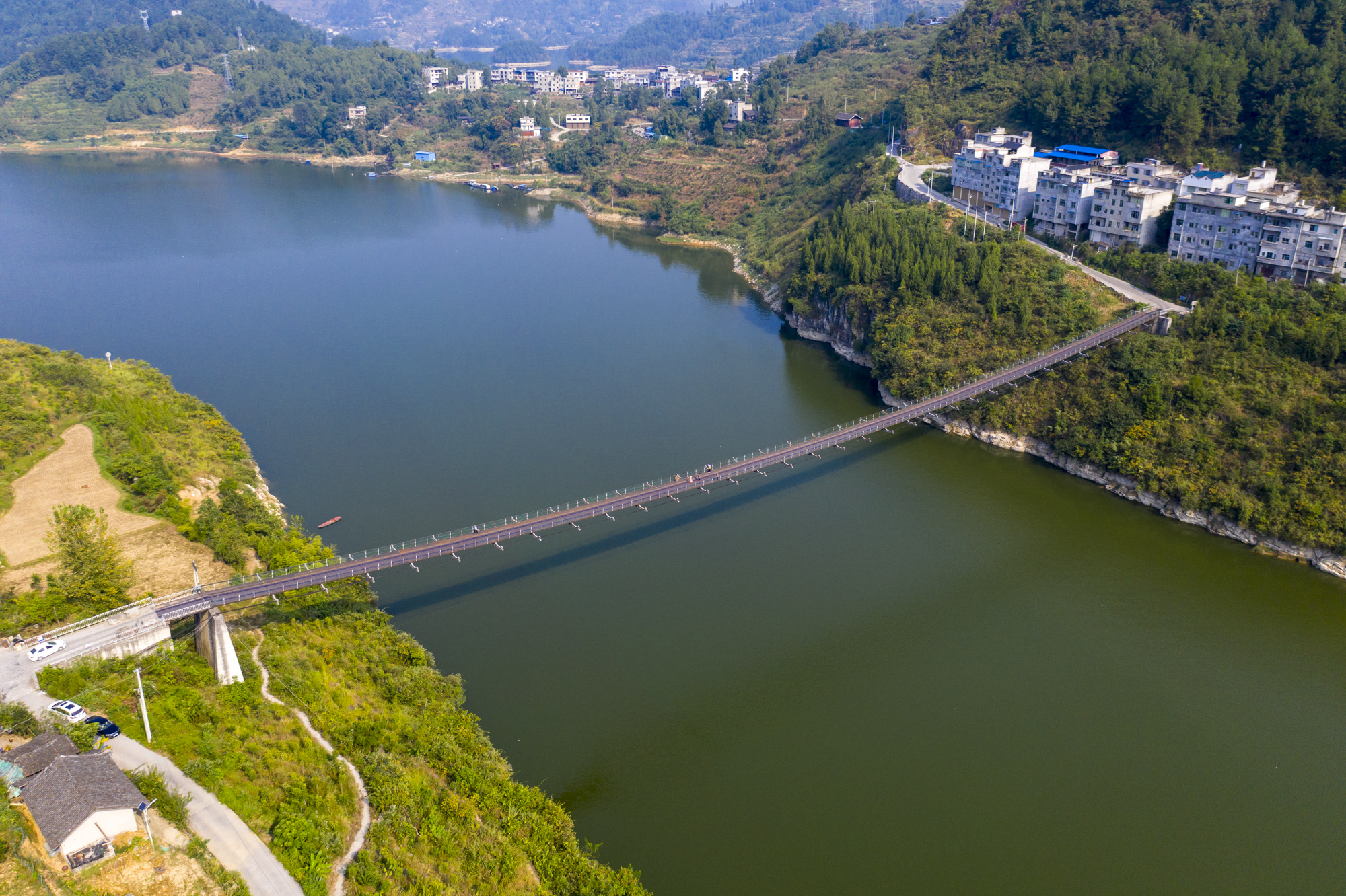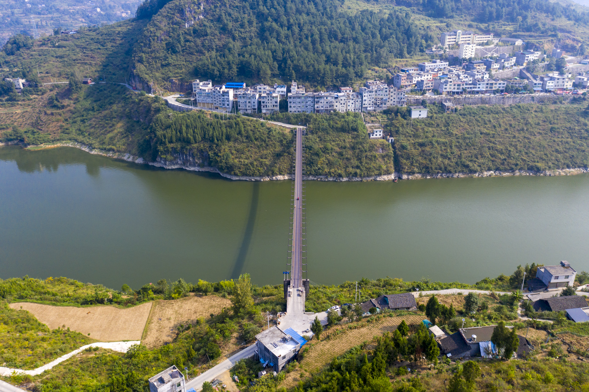 这座铁索桥是方圆几十公里唯一的过江通道,连接乌江两岸三道水乡的天池山村与合朋溪镇三江村,方便了村民的出行,让两岸村民来往省去了几十公里的路程。