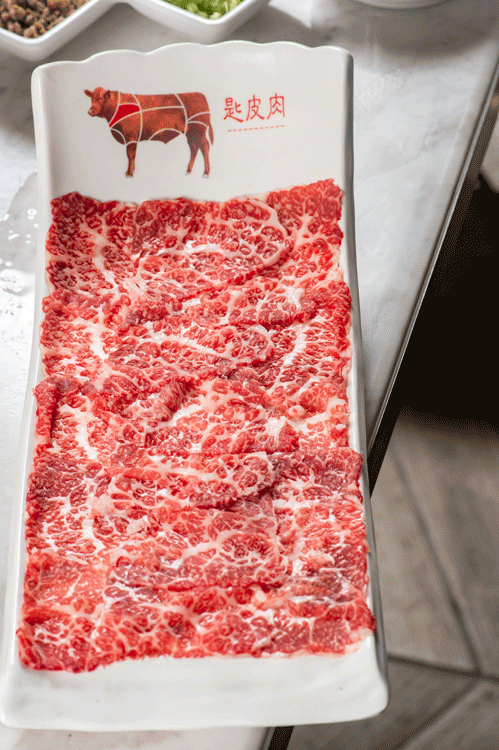真正的牛肉火锅吃家,往往必点肥胼,原因是“涮火锅后,牛油融入汤汁中,涮其他菜,吃起来会更香”。