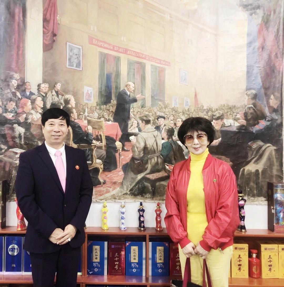 吴海燕老师在白俄罗斯国家美术馆驻华首席执行官刘瀚锴先生收藏的前苏联油画大师作品前留影