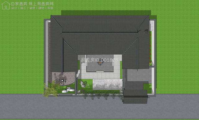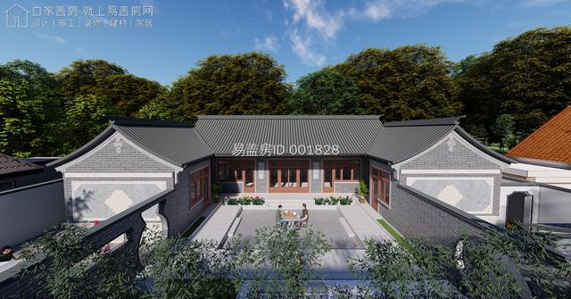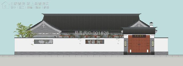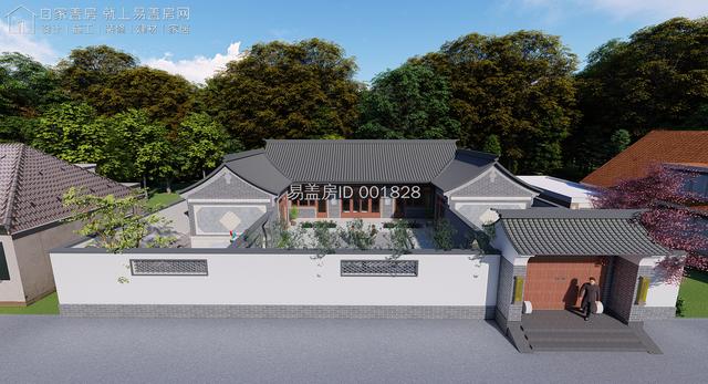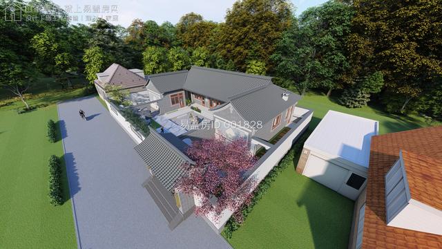 建筑为中式风格的三合院形式,立面选用建材商场提供的白色真石漆,配合传统深色树脂瓦行成极有质感的整体造型。