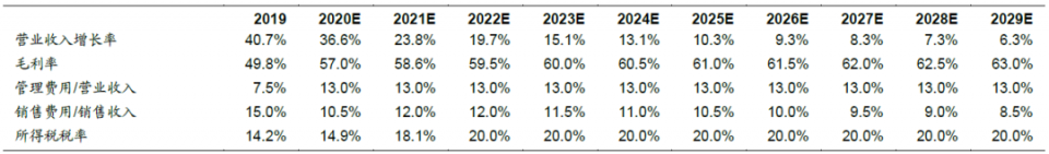 图8:盈利预测主要假设