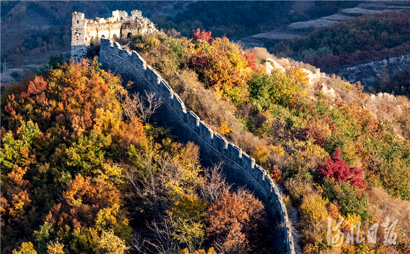 2020年10月21日拍摄的河北省秦皇岛市海港区驻操营镇董家口村长城。深秋时节,位于河北省秦皇岛市海港区驻操营镇的古长城在漫山秋叶的衬托下美不胜收。河北日报通讯员 曹建雄 摄