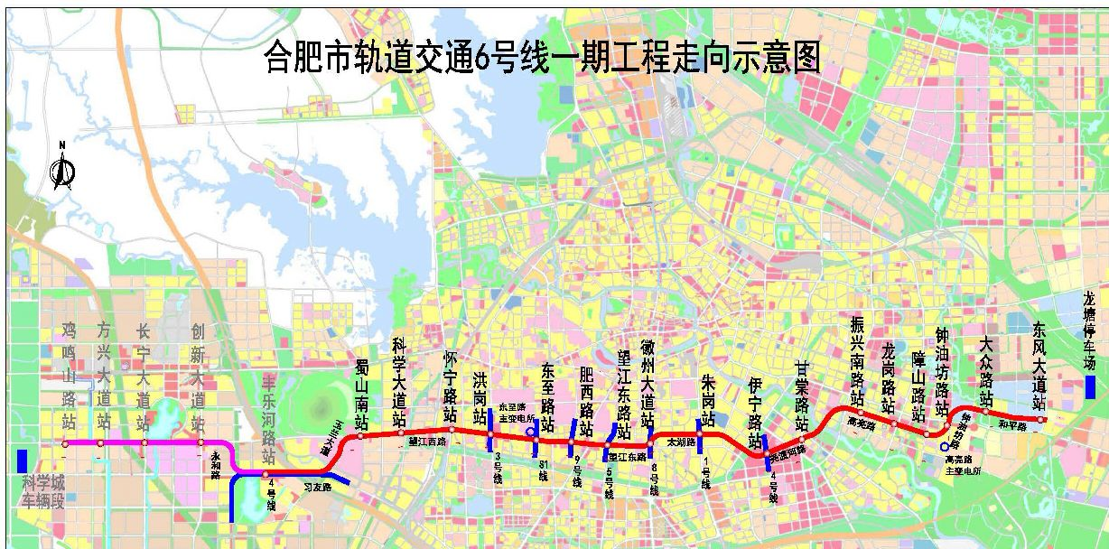 此次根据批复内容,原则同意6号线一期工程线路走向及敷设方式。线路自鸡鸣山路站至东风大道站,途经高新区、蜀山区、包河区、瑶海区、肥东县,全长35.2公里(其中,7.7公里线路拆分于4号线),均为地下线,共设22座车站(其中,新建17座车站)。
