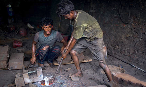 而在这些矿场工作的奴隶中,有不少都是童奴,因为他们身体瘦小,便于在狭窄且封闭的矿道里工作,而且每天都只有很少的时间休息。由于这些童奴一般都会用双手和膝盖在坑道里爬行,同时还因为营养不良和重度劳动,他们其中有许多人都会四肢发育畸形。