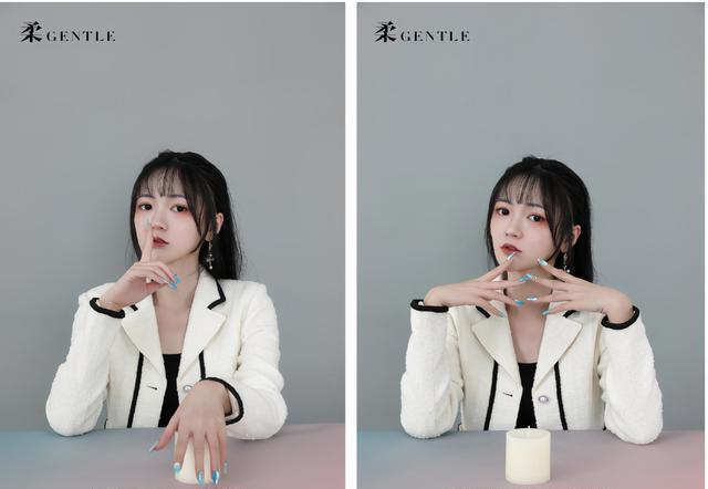 本系列以“柔”为主题,取自忧郁蓝色和纯净白色展现怜惜情绪,采用晕染和贴片技术,将女性的楚楚动人瞬间淋漓展现。