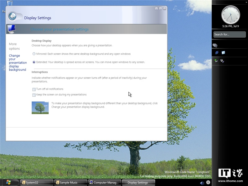 3. 基于 Avalon 框架的显示设置——还记得 3683 那昙花一现的新版显示设置么?在这个 Build 中它终于回归了。虽然其中的不少链接还是会直接打开传统的控制面板,但还是有一些可用的设置页面,例如分辨率、刷新率、DPI、色彩和多显示器模式设置。它位于 C:\Windows\System32\LHDesk.exe。