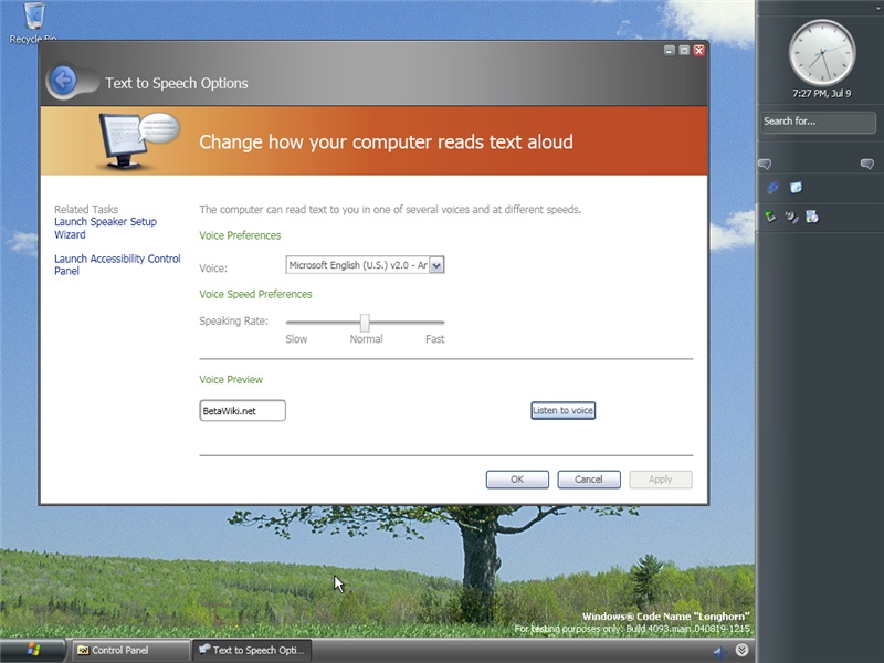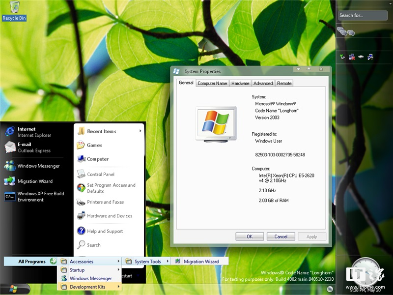 该 Build 修复了经典主题的 Bug;Explorer 的部分字符串问题也修复了。控制面板中增加了新的语音识别和文字阅读功能(老版本的语音功能仍然存在),硬件和设备控制面板也恢复了。DirectX 版本号可识别了(9.0b),不过仍然有文件缺失或注册的问题。任务栏新增了一个音量图标,单击它会打开声音和音频设备属性(传统的音量调节图标仍可启用,不过是显示在边栏上)。开始菜单的电源按钮菜单进行了调整以适配 Longhorn 的主题效果,并简洁的提供睡眠(菜单中的也改名为 Sleep 而不是 Stand by)、关机、重启 3 个按钮,选择任一选项后都会有 10 秒的延时确认对话框。