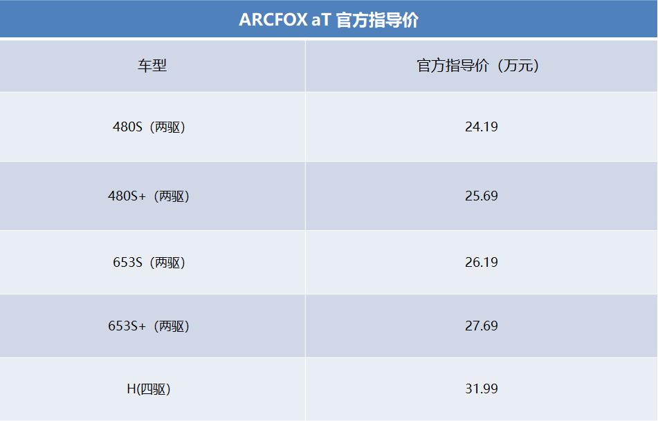经过四年的蛰伏期,北汽新能源高端品牌ARCFOX首款量产车正式上市,全新纯电动中型SUV aT官方售价万元,该款车有两个NEDC综合工况续航里程480km和653km,共5款车型。