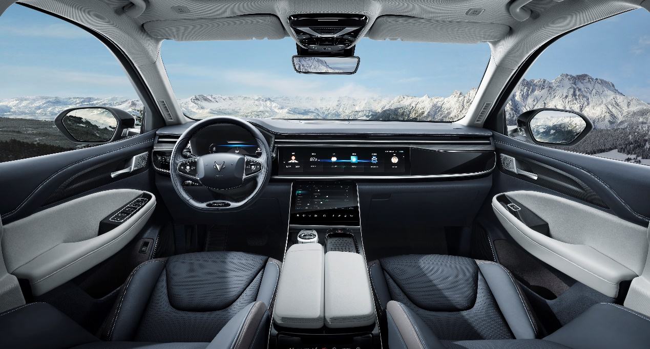 内饰材质采用大量真皮和Alcantara材质,打造舒适性驾乘体验。全球首款哈曼20.3寸4K视网膜大屏,中控台下方10.1寸触控屏,8寸HUD和12.3寸全液晶仪表盘行程四屏互联,营造出智能驾驶座舱。