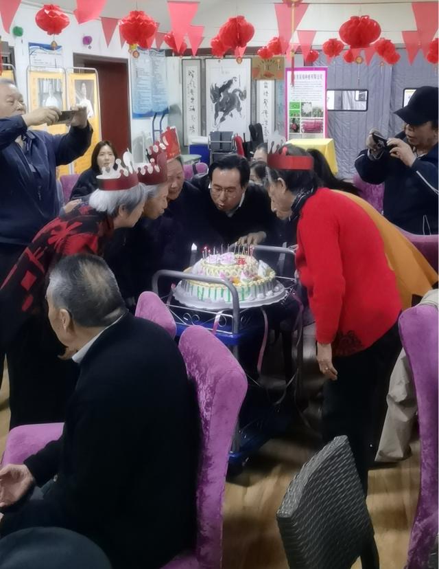 孙玉良、谢关霞与老人们共同点燃生日蜡烛许愿
