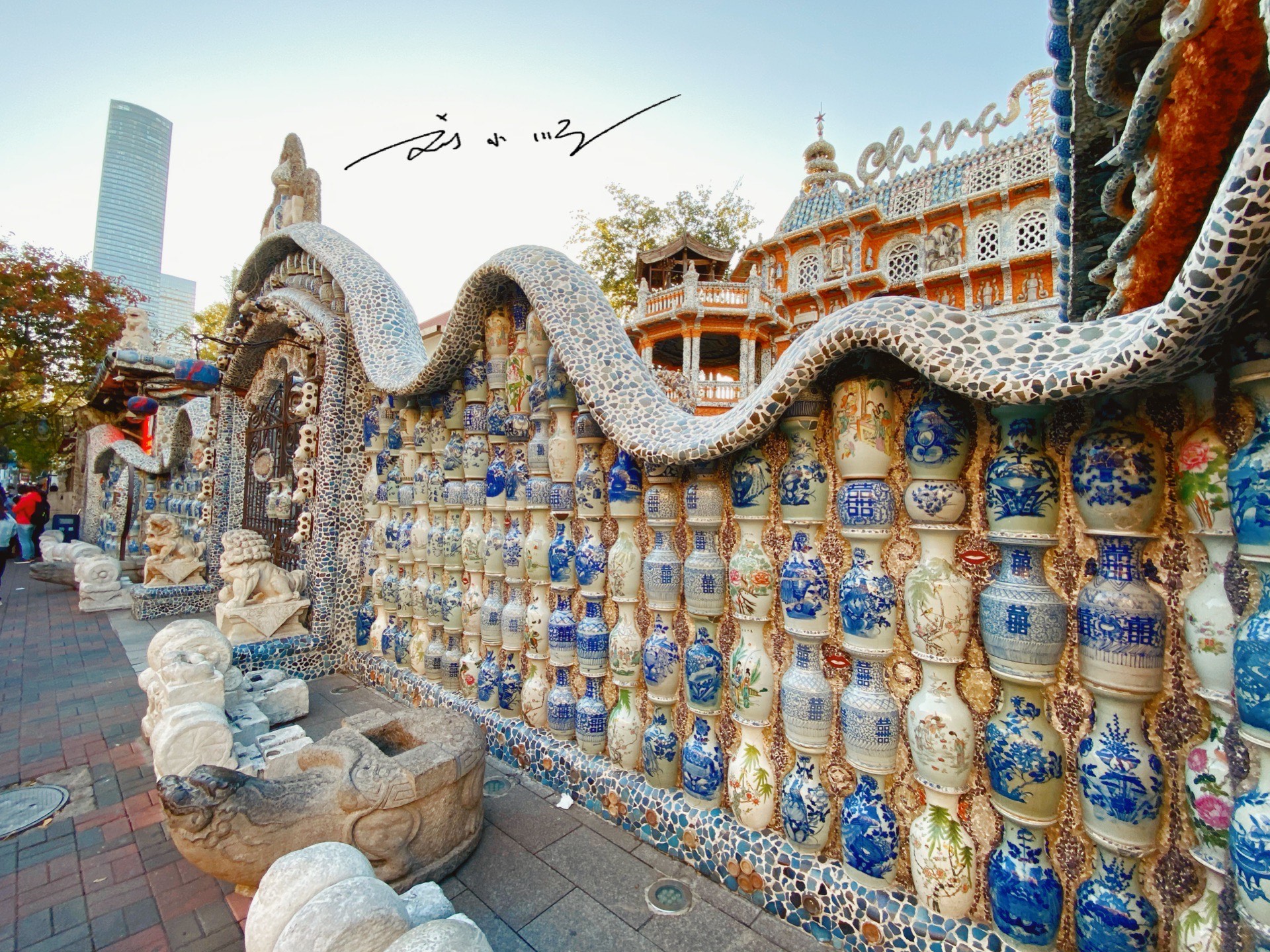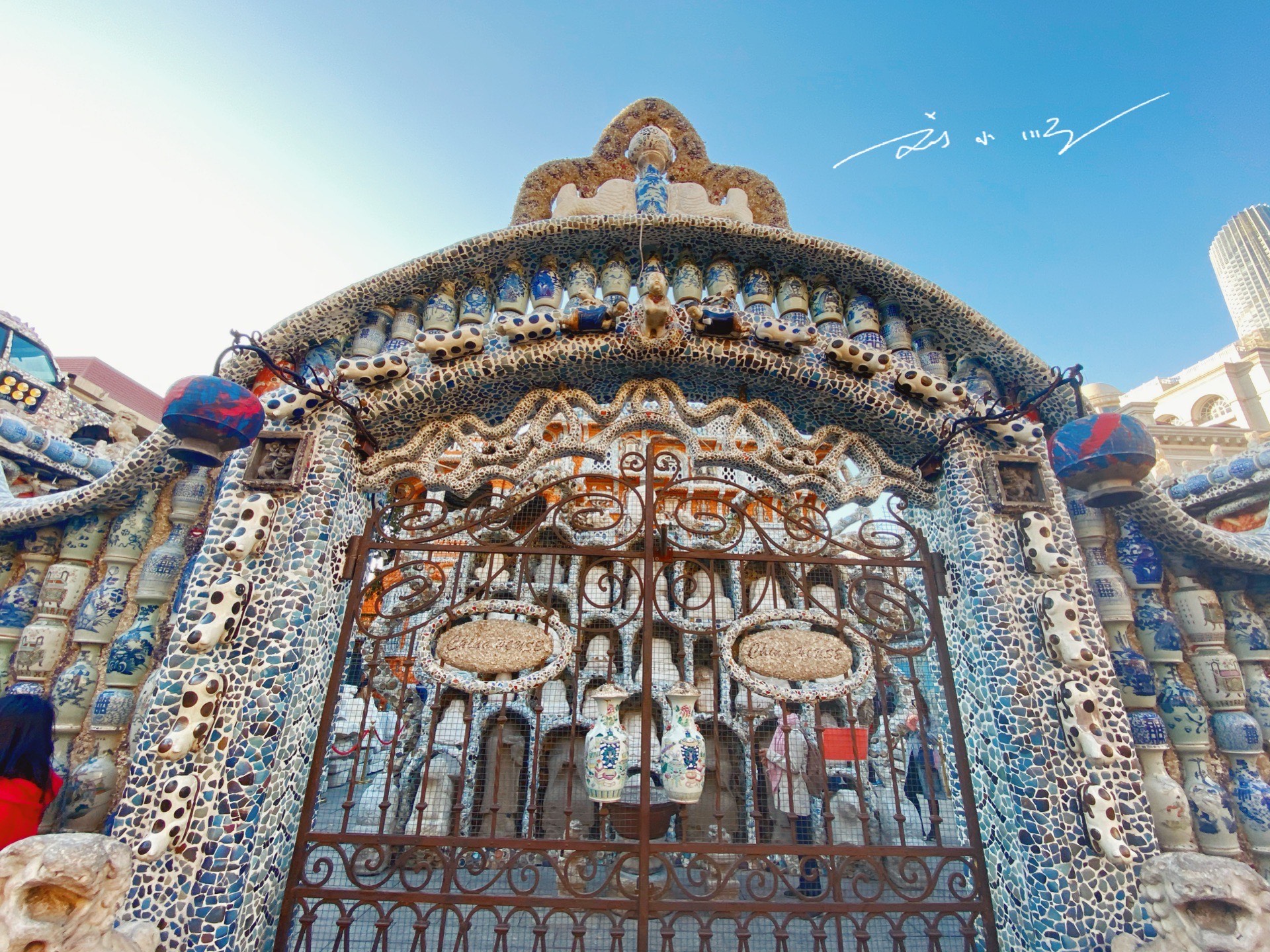 “瓷房子”位于天津市和平区赤峰道,顾名思义,这就是一幢由瓷器为主要元素构建起来的奇特建筑。当我和朋友刚来到“瓷房子”前面时,就被眼前的景象给震惊了,光是“瓷房子”外面的围墙上,就镶嵌着无数古董瓷瓶,令人叹为观止!