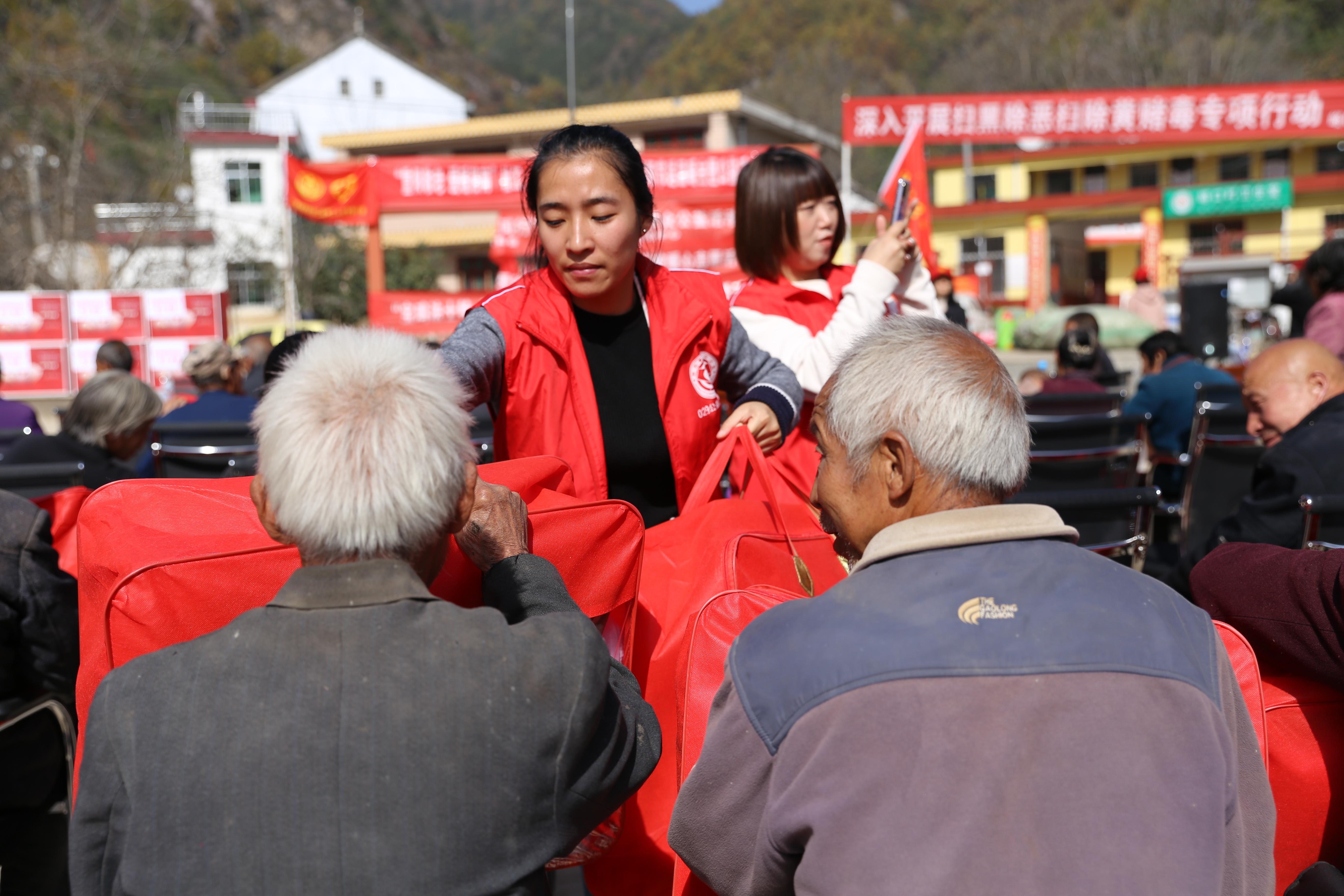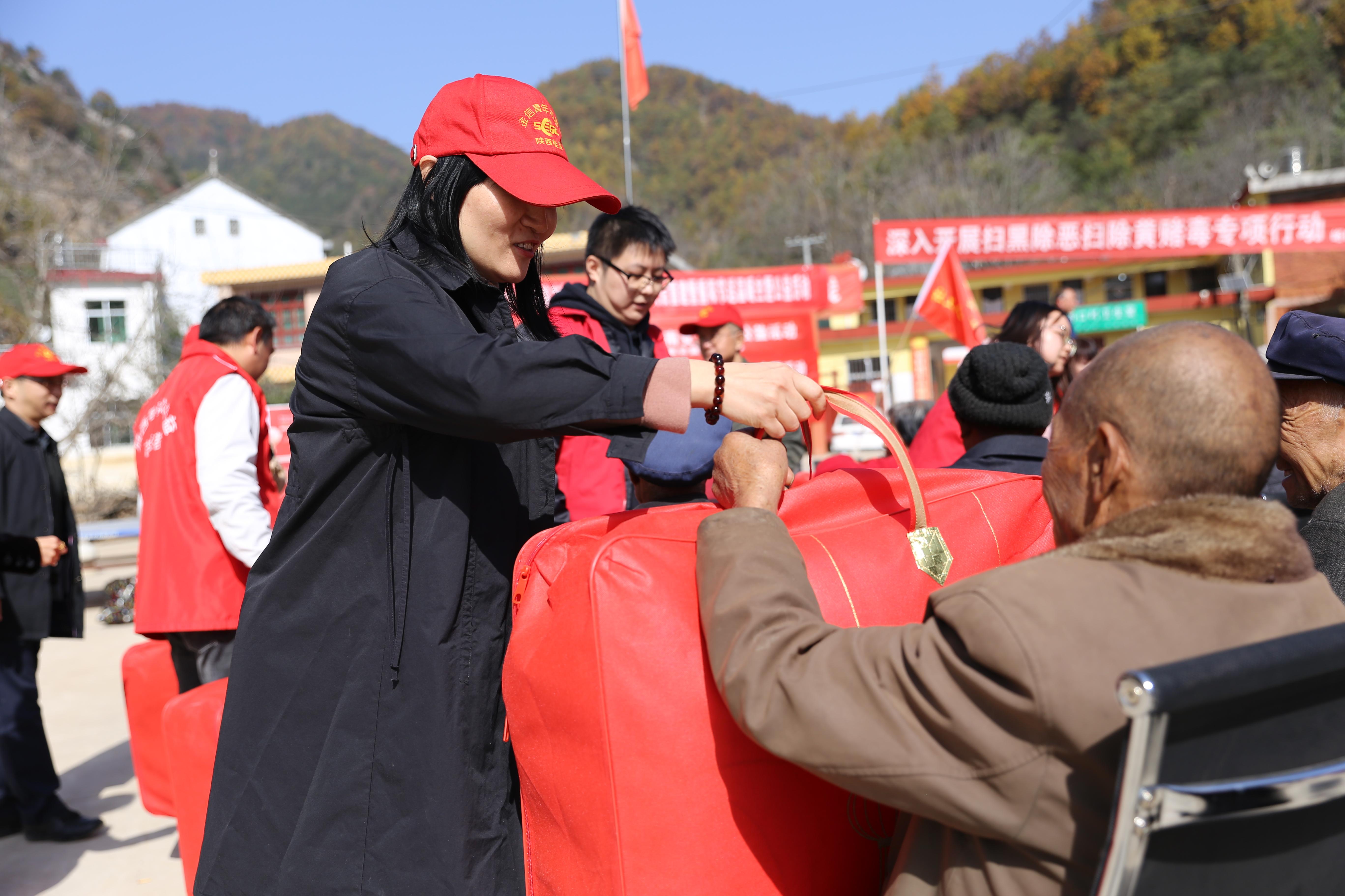 (陕西公益传媒资讯)2020年10月23日,重阳节即将到来,由全国志愿服务示范团队——陕西零贰玖公益服务中心携手西安国际港务区、曲江扶贫办、陕西安徽商会、金信实业公司、陕西省慈善协会爱为宝项目、宝鸡法士特、皇冠假日酒店、陕西金信餐饮公司、爱之家、西安医学高等专科学校委员会社团联合会零贰玖公益协会、西安石油大学源生新乡村建设促进会、共青团西安交通工程学院委员会等多家单位走进商洛洛南地区奉献爱心。