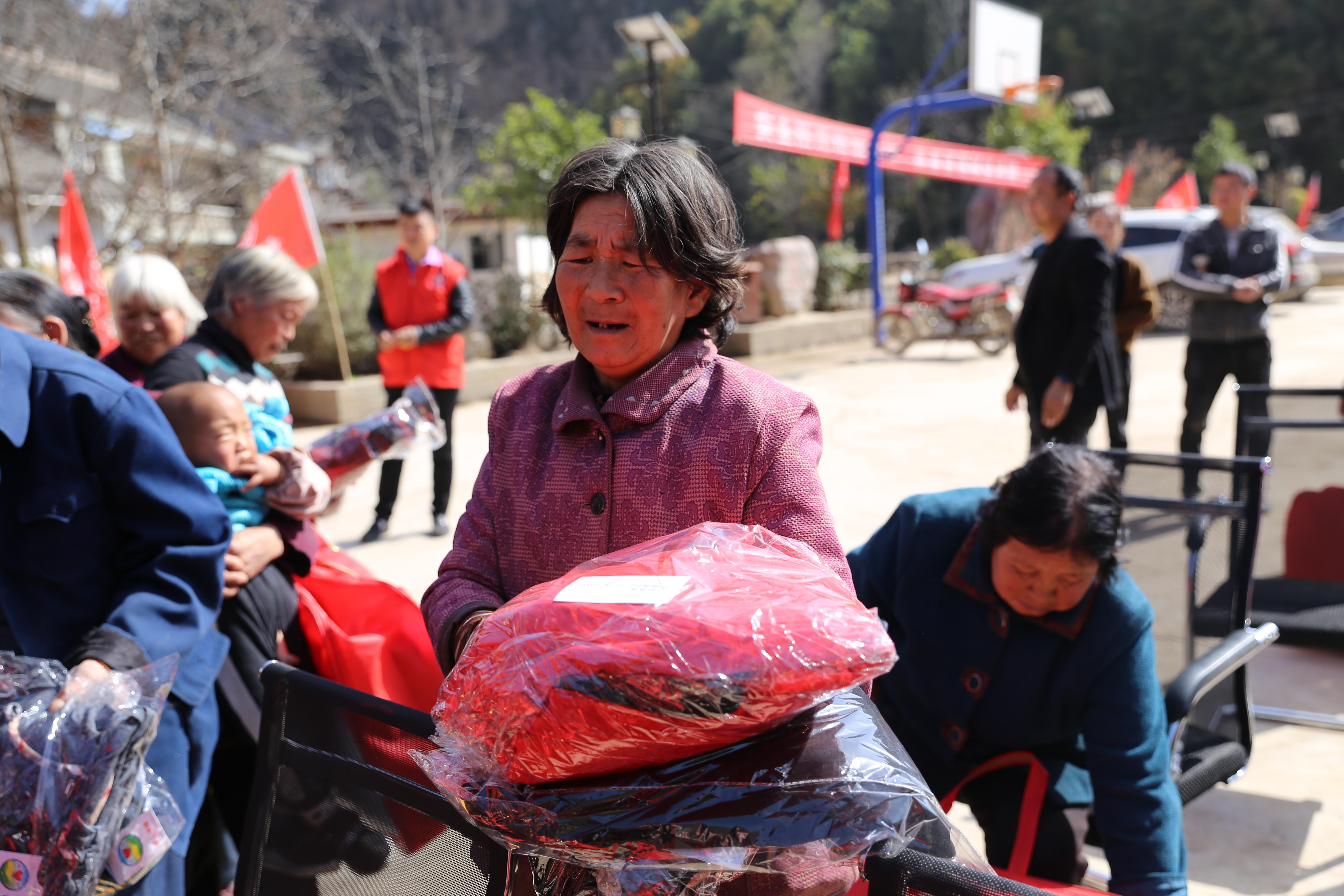 志愿者们把崭新的棉被送到老人手里,有的老人高兴的笑,也有的老人感动的掉泪,满头花白的老人不少,随后大家把上千件衣物让老人和村民自选,现场热闹非凡,孩子们与志愿者玩着游戏,也非常的开心。