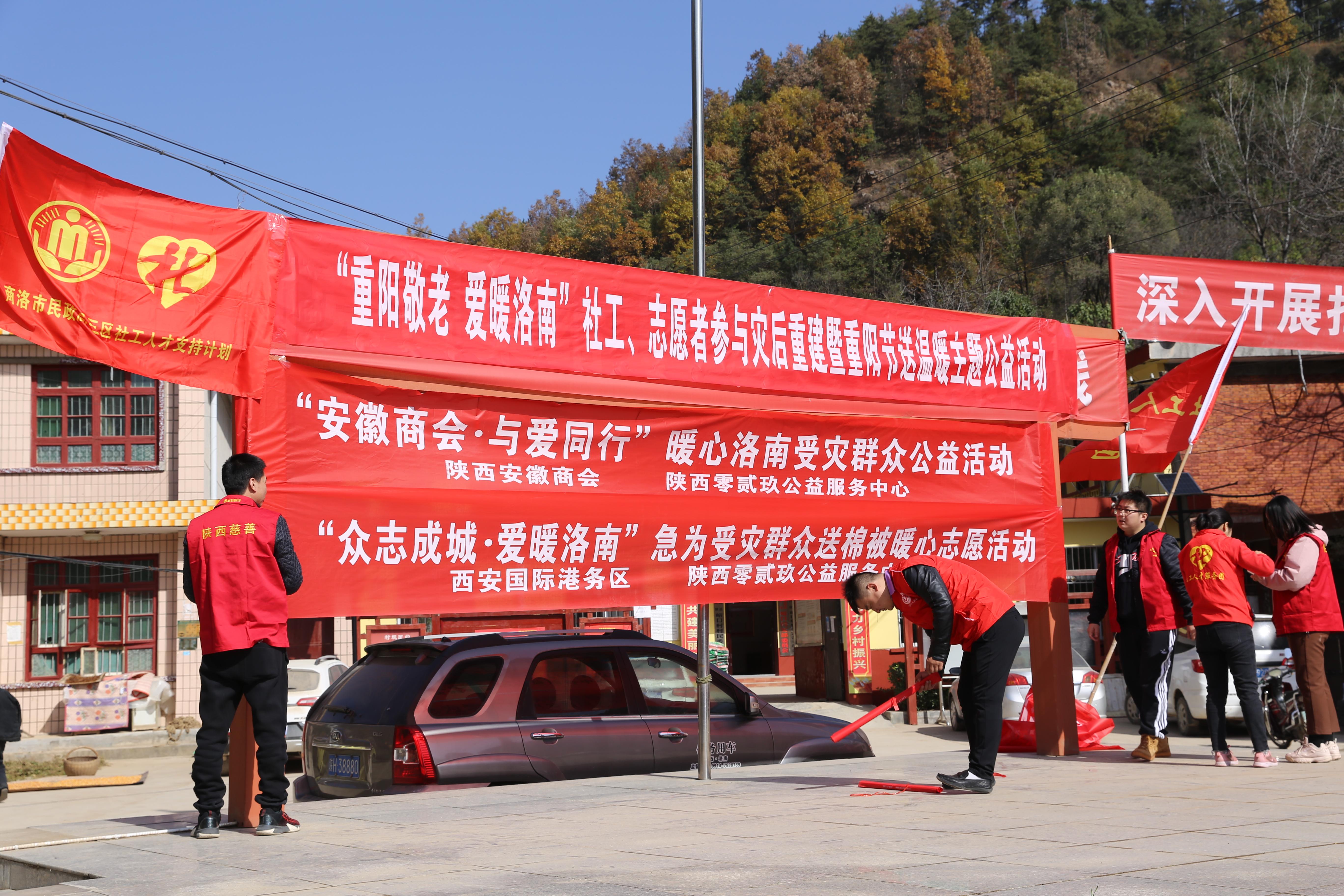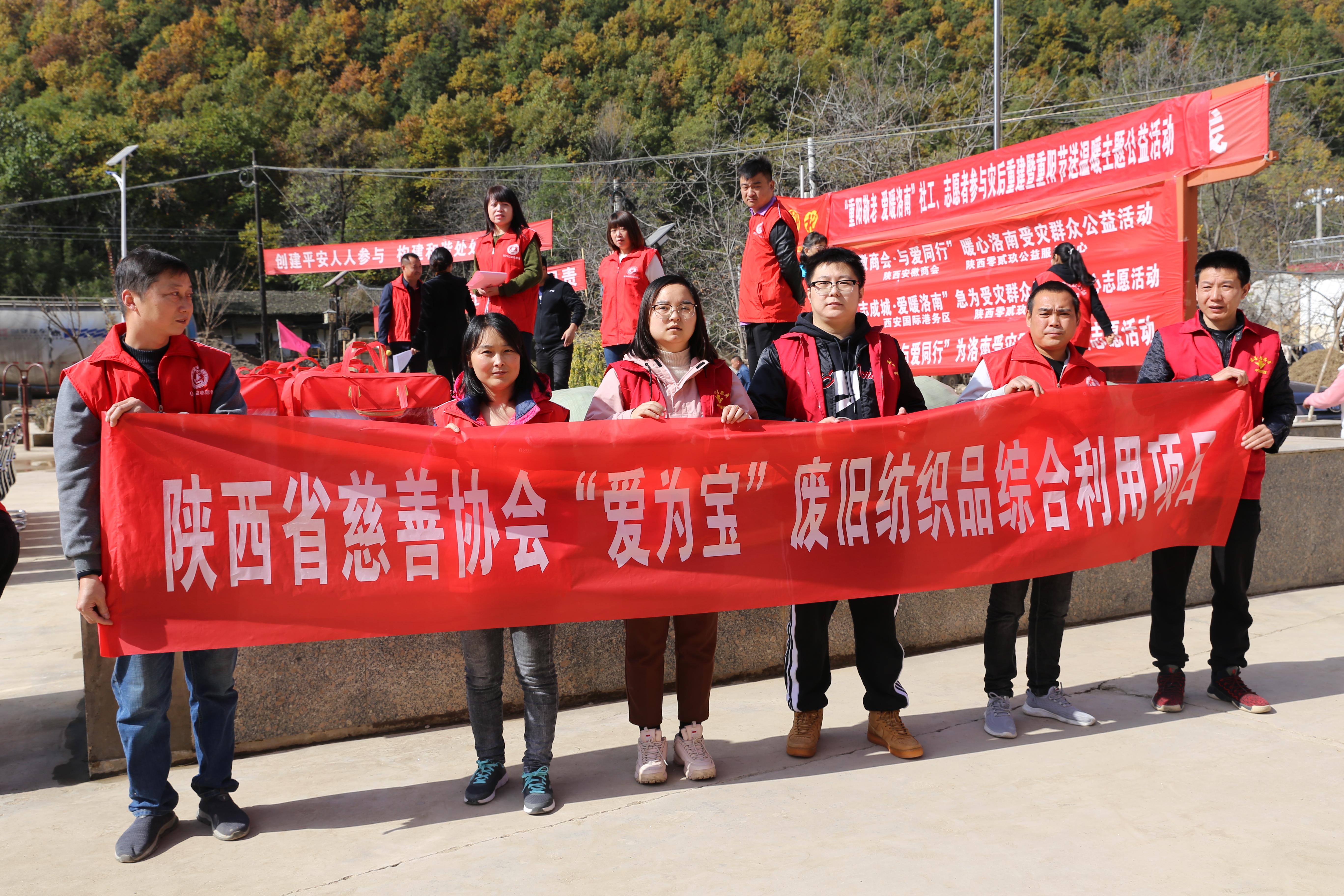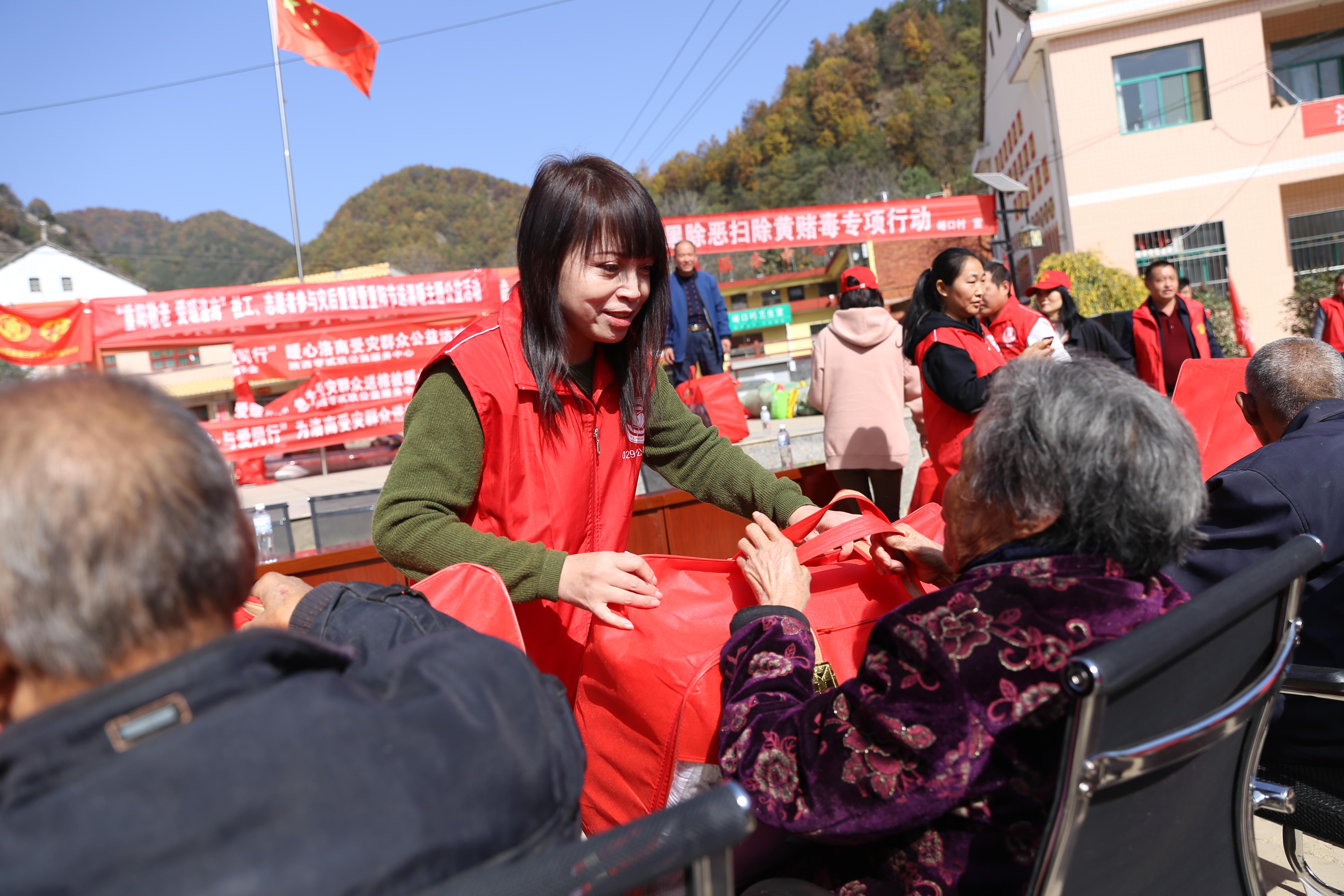 在商洛市民政局、洛南县民政局、洛南县麻坪镇的支持下,通过三区社工计划和029志愿者,上午为洛南受灾群众峪口村的100多位老人们送去重阳节的慰问,下午为火寨村的老人和孩子们送去全新的棉被,健康洗漱包、各单位捐赠的爱心衣物,价值共3.5万余元,让老人和孩子们开心的提前过节日。