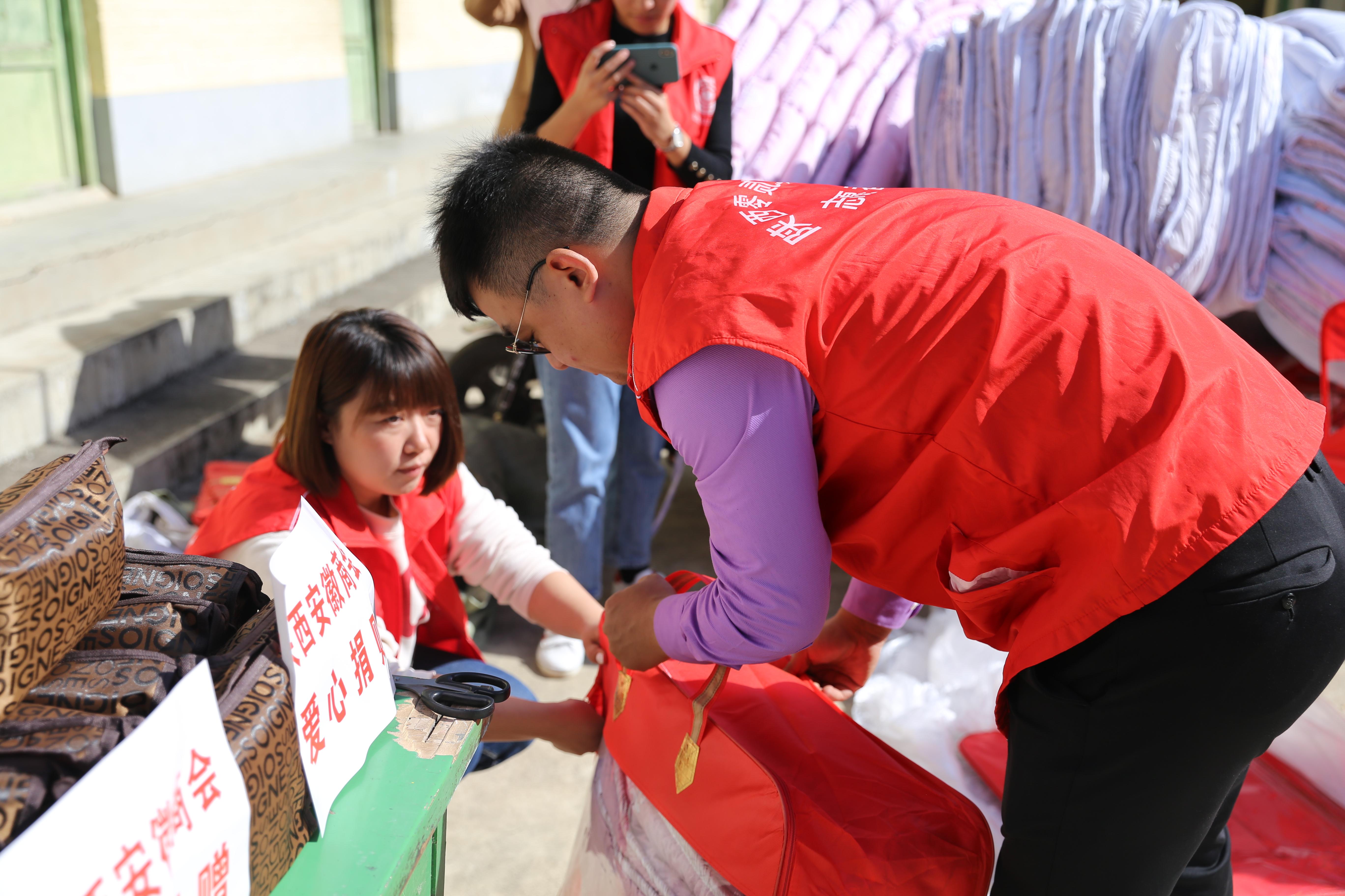 西安国际港务区为本次活动提供了100多床全新的棉被,陕西安徽商会、宝鸡法士特提供了100名孩子所需要的健康洗漱包,里面有毛巾、洗头膏、护手霜、香皂、牙膏牙刷等现在实有的生活物品。