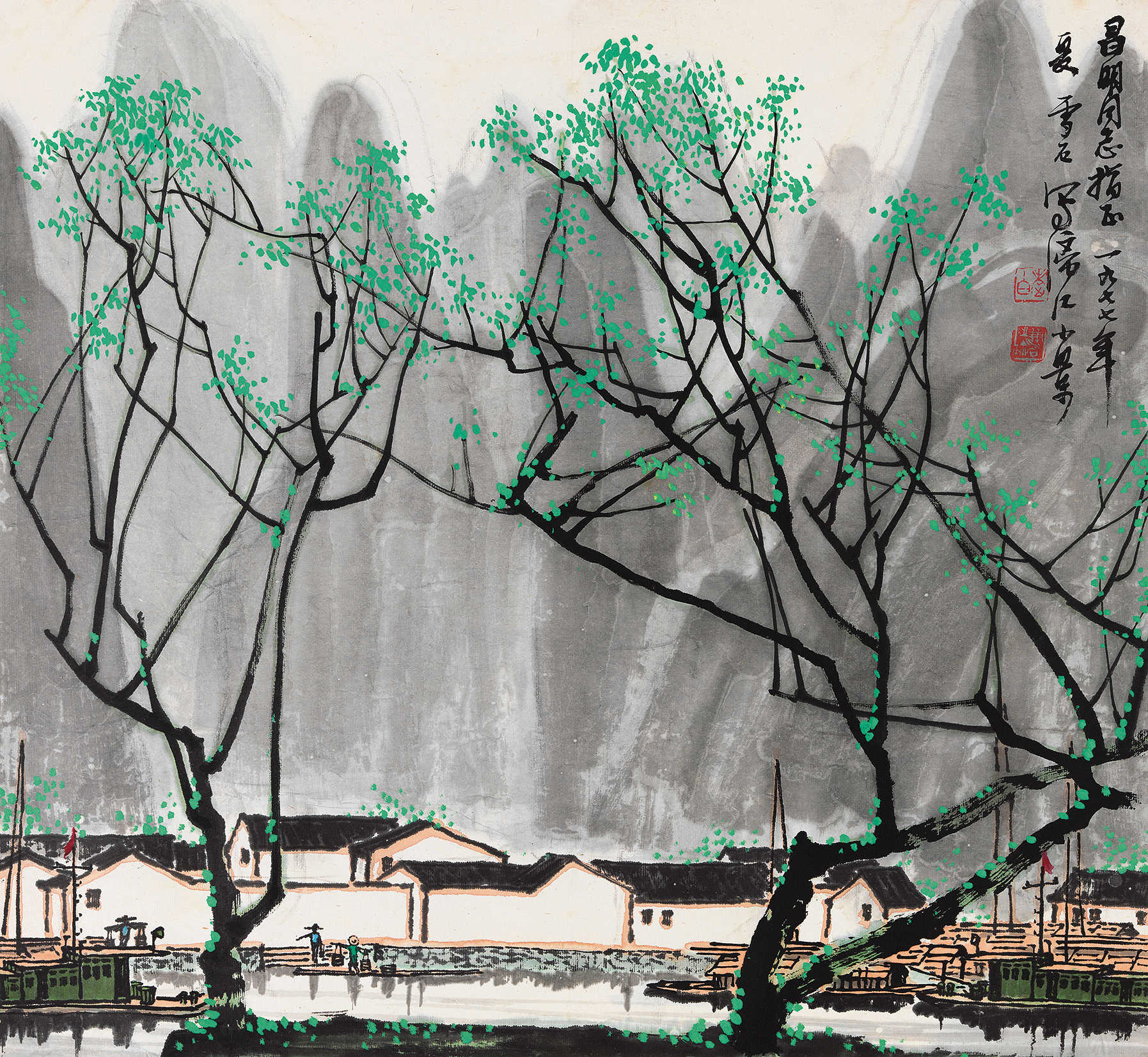 白雪石 1980年作 盛夏江边 立轴 设色纸本
