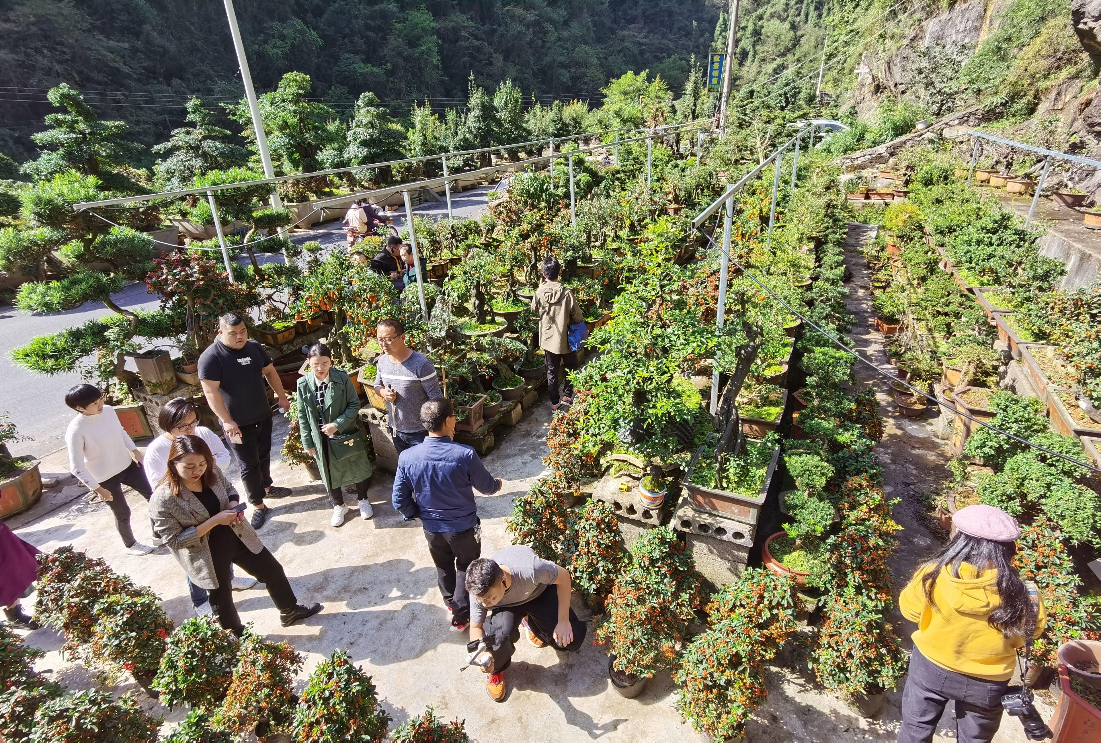 来到高家堰村,通过实地考察,可以看到如今的湖北省新农村建设示范村是如此美丽,如此幸福!勤劳智慧的高家堰土家儿女依托独特的自然资源,打造出了一个集种植、旅游、盆景加工为一体的清江盆景产业园区。我们一行走访了宜昌清江盆景园,便了解盆景产业的发展历程、当前发展和带动脱贫致富情况。随后实地观看了高家堰第一代盆景艺人涂常兵盆景修剪技艺现场教学、电商销售大户李小康直播卖盆景,并参观了80后盆景产业带头人向意廷的精品盆景园,现场就盆景产业发展和直播卖货与盆景产业能人交流了经验心得。