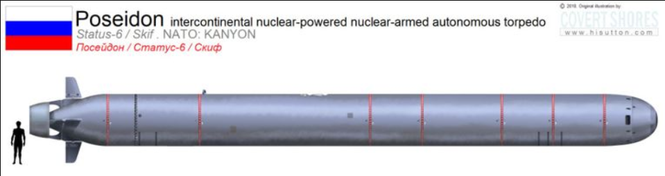 ▲“波塞冬”巨型鱼雷和人类尺寸对比示意图