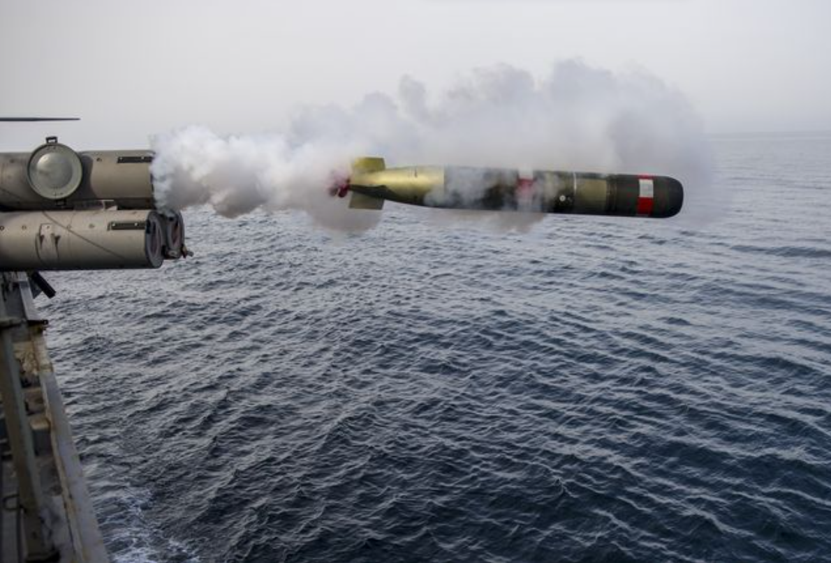 ▲Mk. 54反潜鱼雷堪称是“锤头”水雷的心脏部分,图为2014年从美国导弹驱逐舰罗斯福甲板上发射该鱼雷的情景