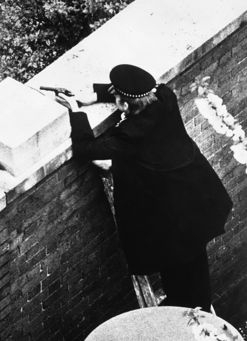 接下来如一般人质事件电影上的情节,英国警方封锁使馆周围街区,设立临时指挥部,向上通报,然后撒切尔夫人跟一众高层开会商讨对策等等。如此大的动静也吸引了大批媒体前来围观报道。