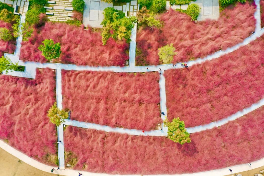 粉黛乱子草在近一年时间里把“粉色旋风”刮遍了全网,不少景点里都开始种植。但是在酒店里大面积、大范围种植粉黛乱子草,并把它融于酒店景观、客房景观中的,老北门柏漾酒店可能是其中的佼佼者。先来看看上帝视角的它们!