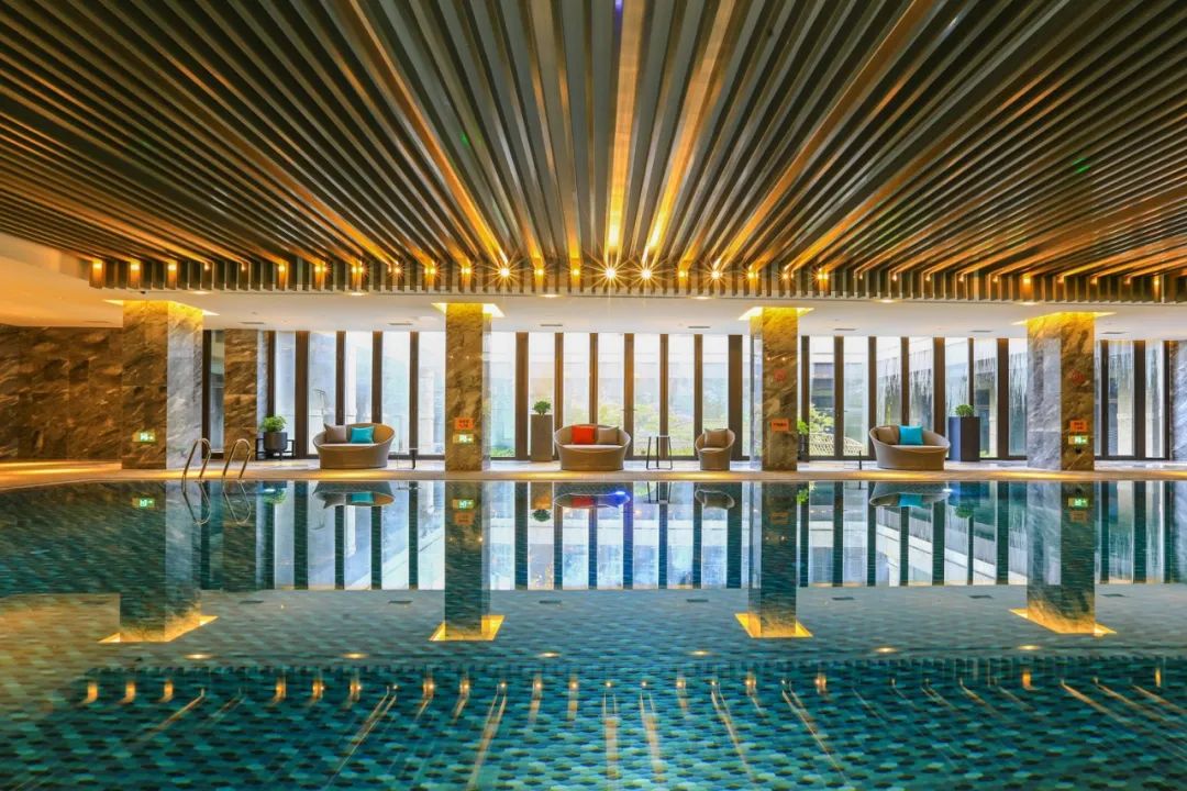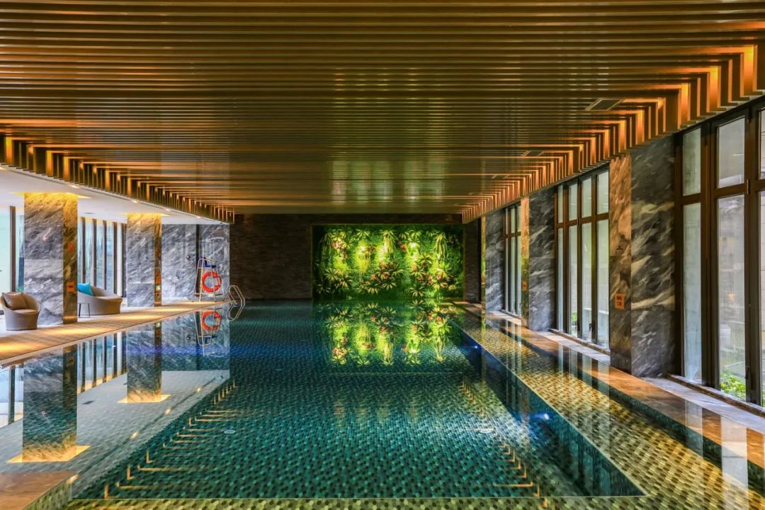 康体达人们也不会错过这里的完备设施。虽然在零层,但室内恒温泳池也能享受到阳光的滋润,大片的绿植墙生机盎然,令人仿佛在自然中畅游。更衣室内,还配备了干蒸房等设施。