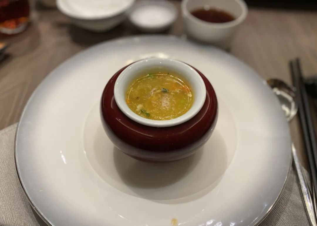另一道特色菜品是果木烤全鸭。其实在推荐我这道菜品时,我是拒绝的。作为烤鸭爱好者,也算是尝遍了中国各地的知名烤鸭,一家苏州菜馆竟然说烤鸭是特色,真的是很匪夷所思了。不过在等待了45分钟后尝到它,觉得真是惊喜万分。鸭子的选用不会像北京烤鸭那么肥硕,鸭皮的脆度很惊艳,脂肪含量也刚刚好,多吃几片也不会腻,确实很精彩。